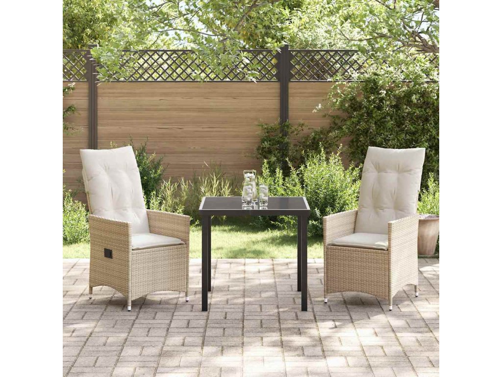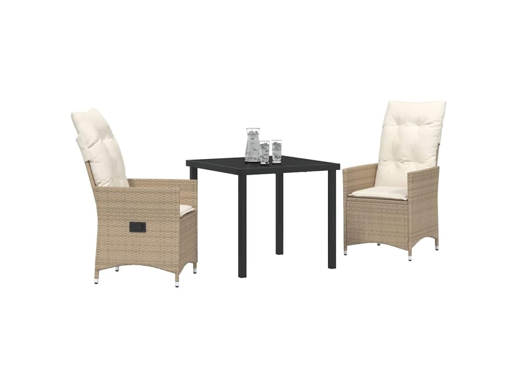 Zahradní jídelní souprava s polštářem 3 pcs Béžová Poly ratan 3379555