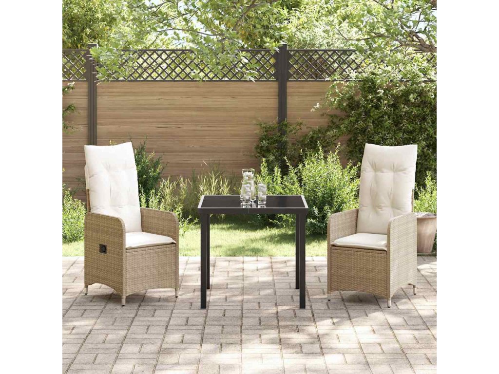 Zahradní jídelní souprava s polštářem 3 pcs Béžová Poly ratan 3379653