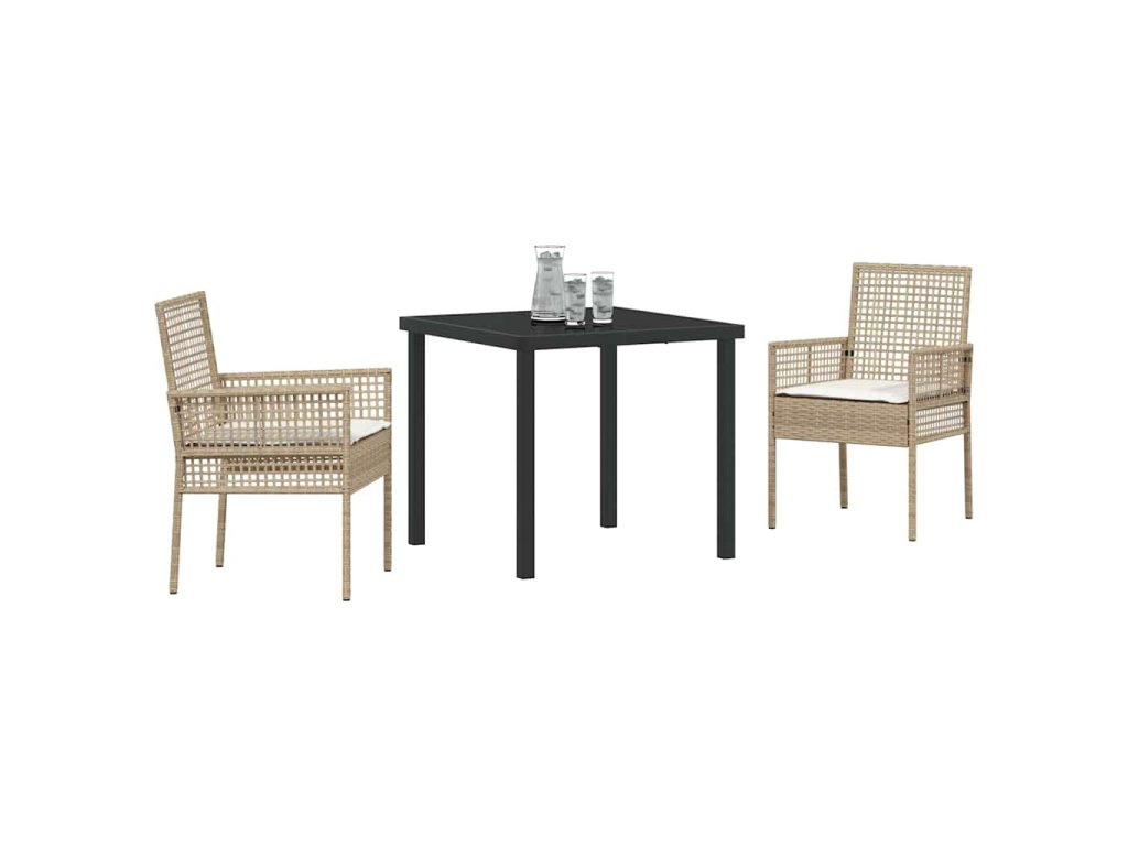 Zahradní jídelní souprava s polštářem 3 pcs Béžová Poly ratan 3379891