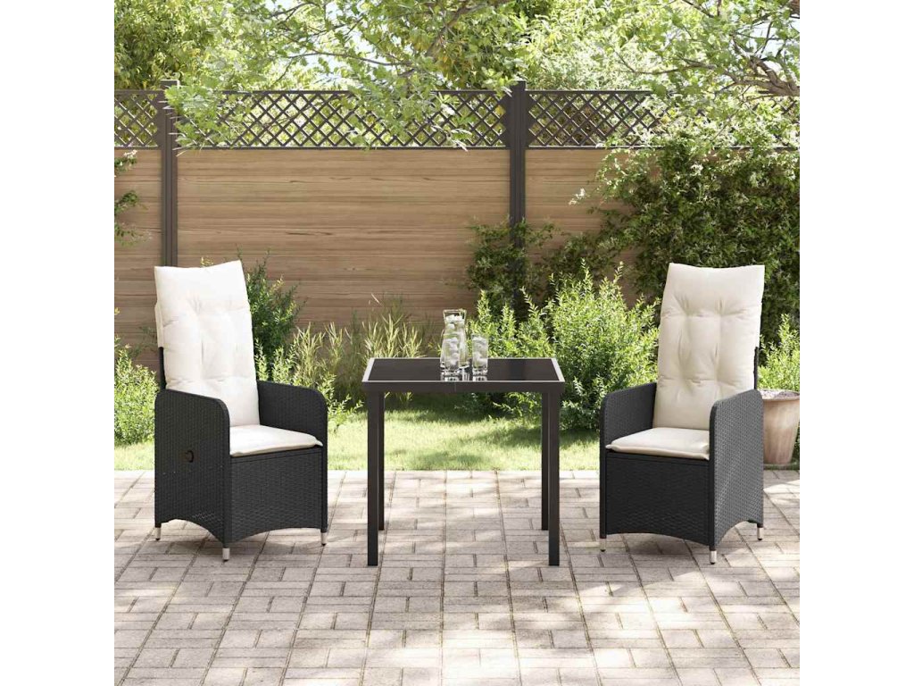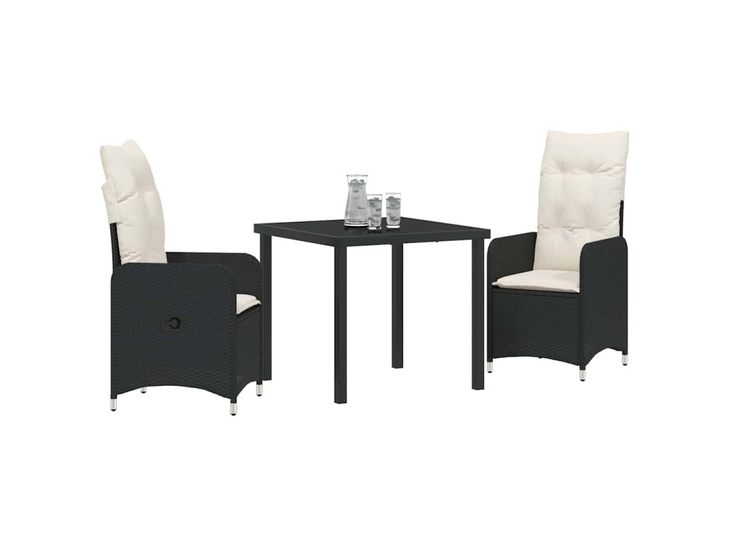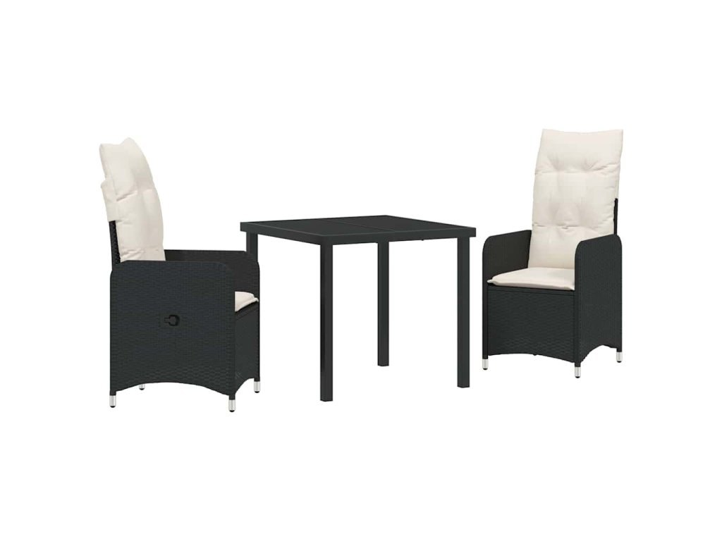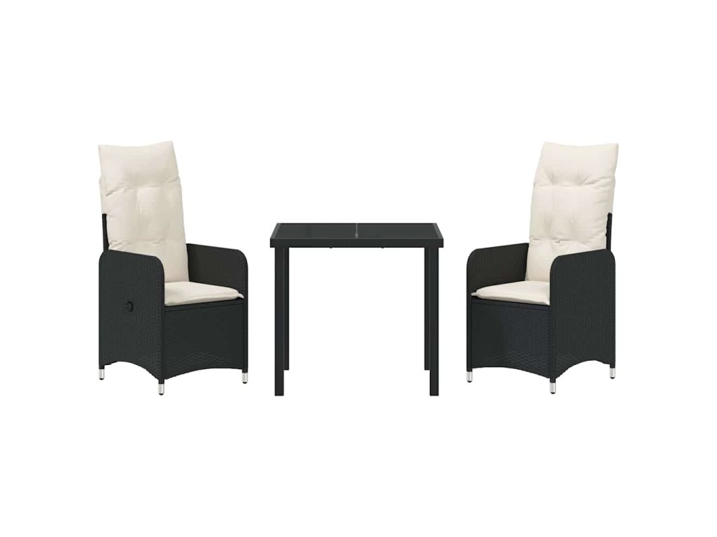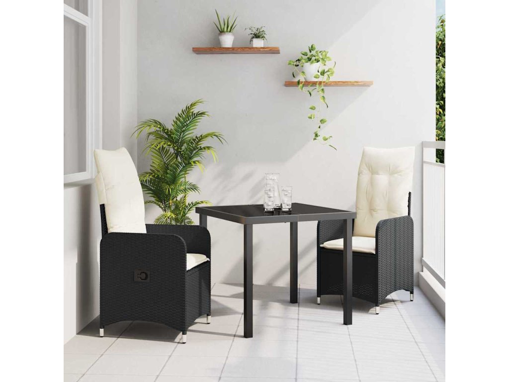 Zahradní jídelní souprava s polštářem 3 pcs Černá Poly ratan 3379632