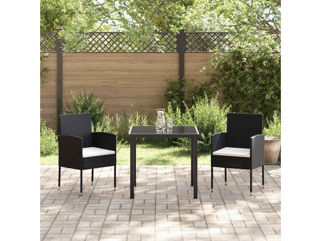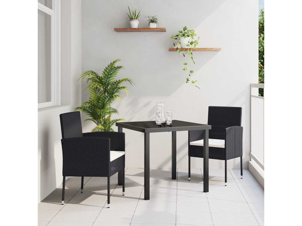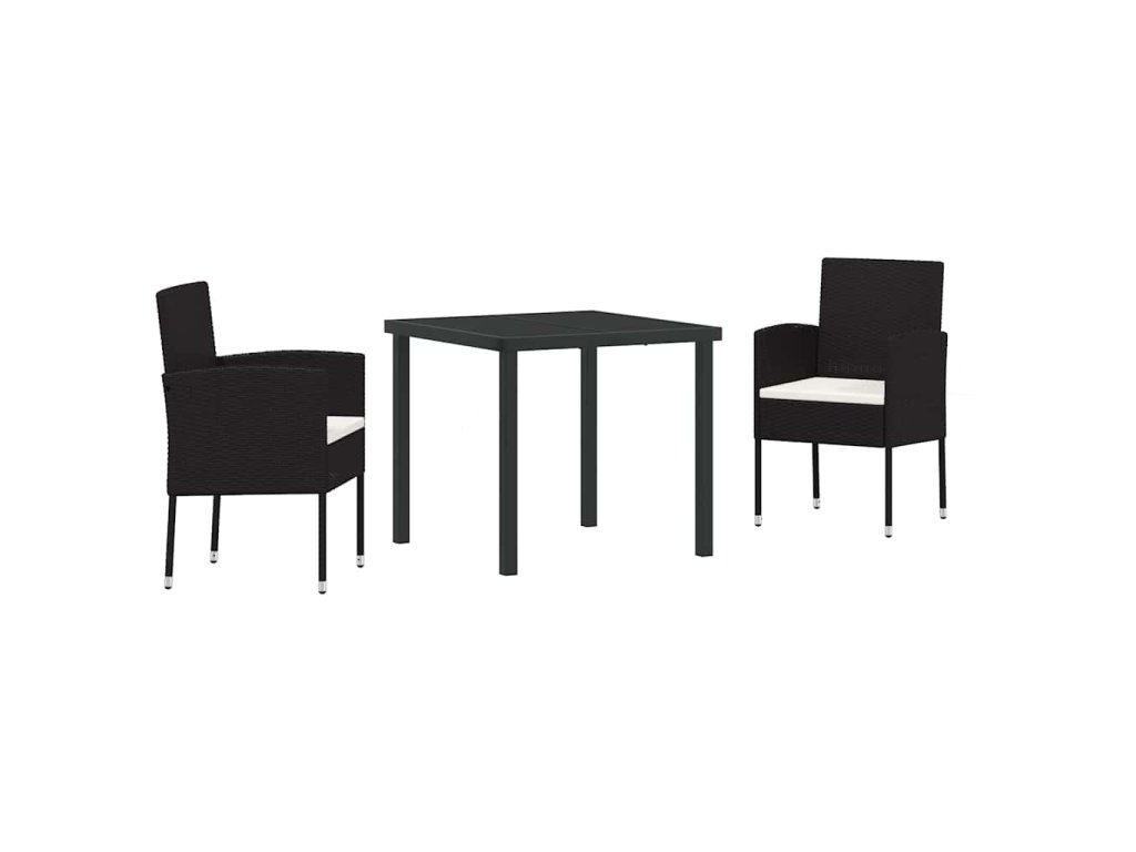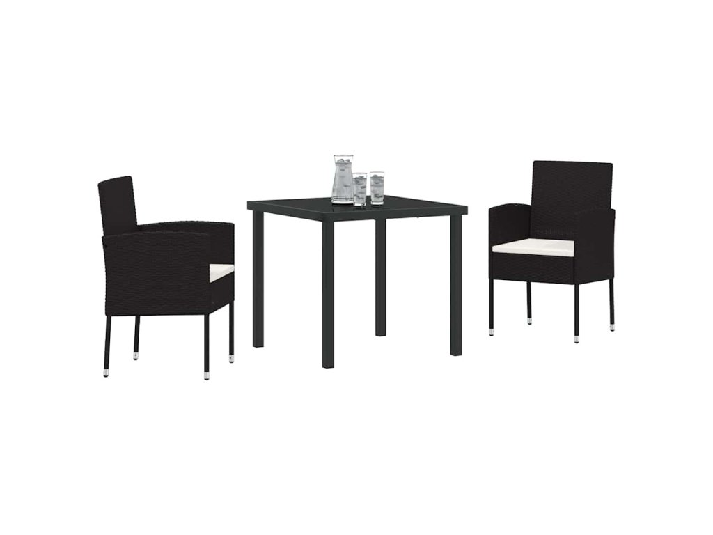 Zahradní jídelní souprava s polštářem 3 pcs Černá Poly ratan 3380050
