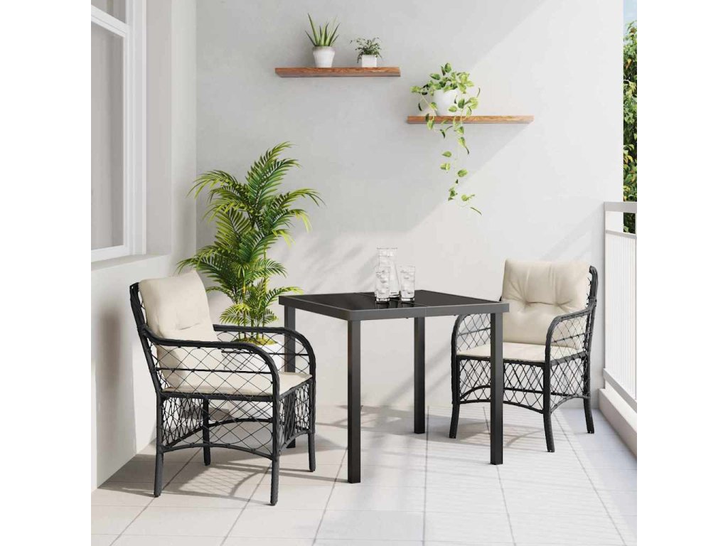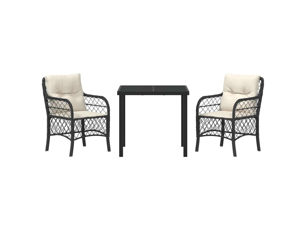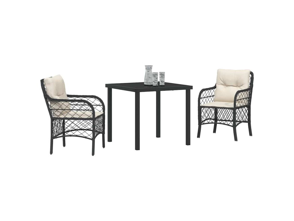 Zahradní jídelní souprava s polštářem 3 pcs Černá Poly ratan 3380197
