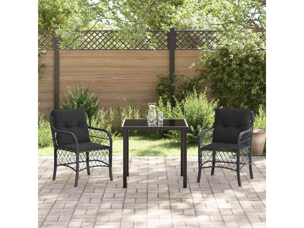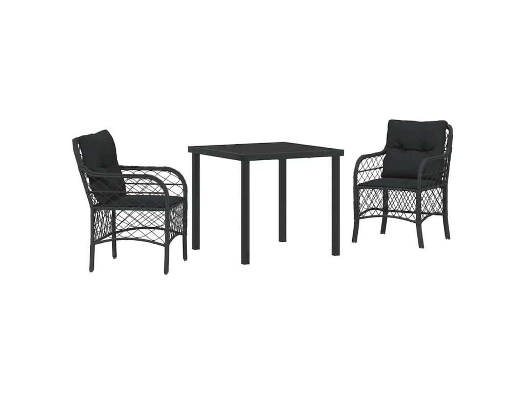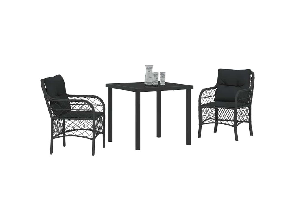 Zahradní jídelní souprava s polštářem 3 pcs Černá Poly ratan 3380204