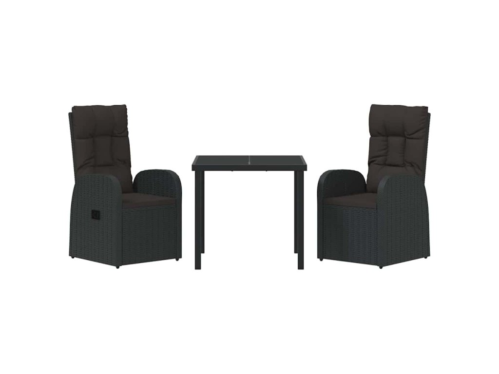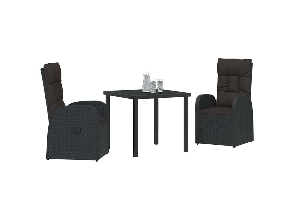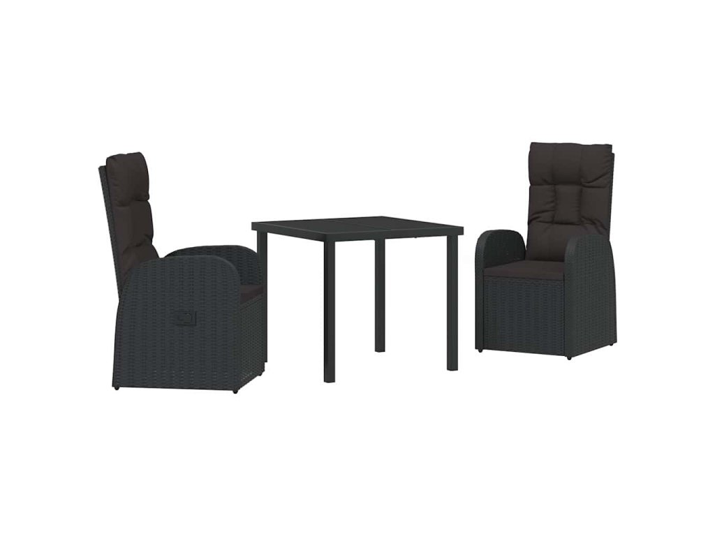 Zahradní jídelní souprava s polštářem 3 pcs Černá polyratan 3379506