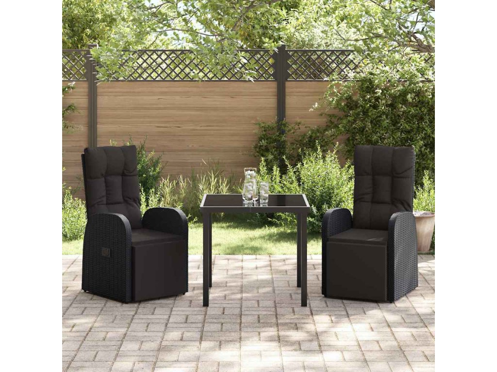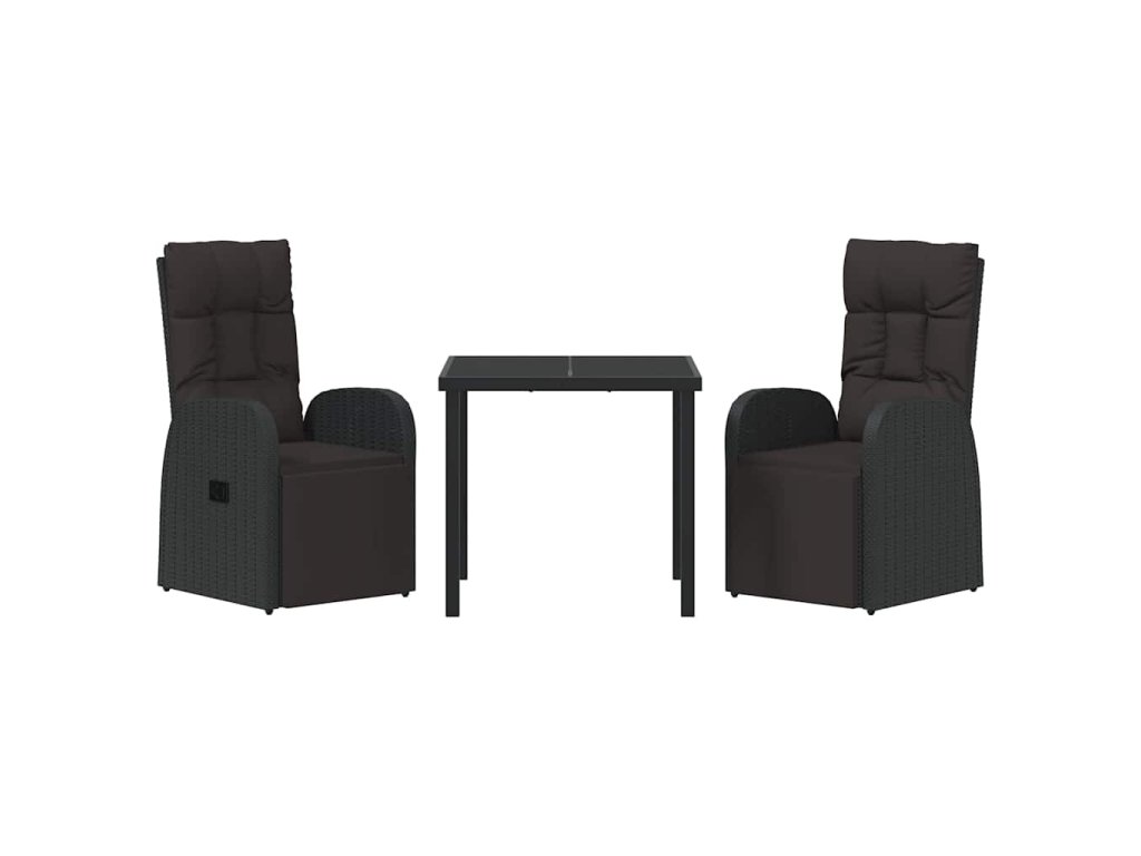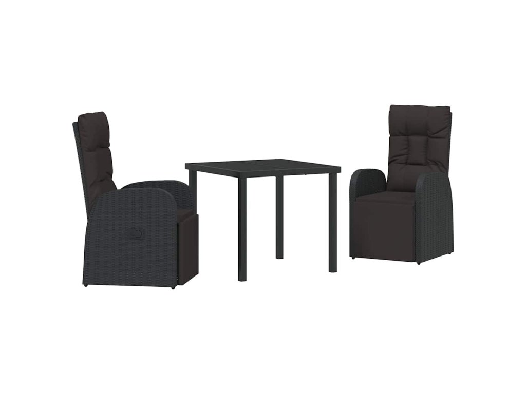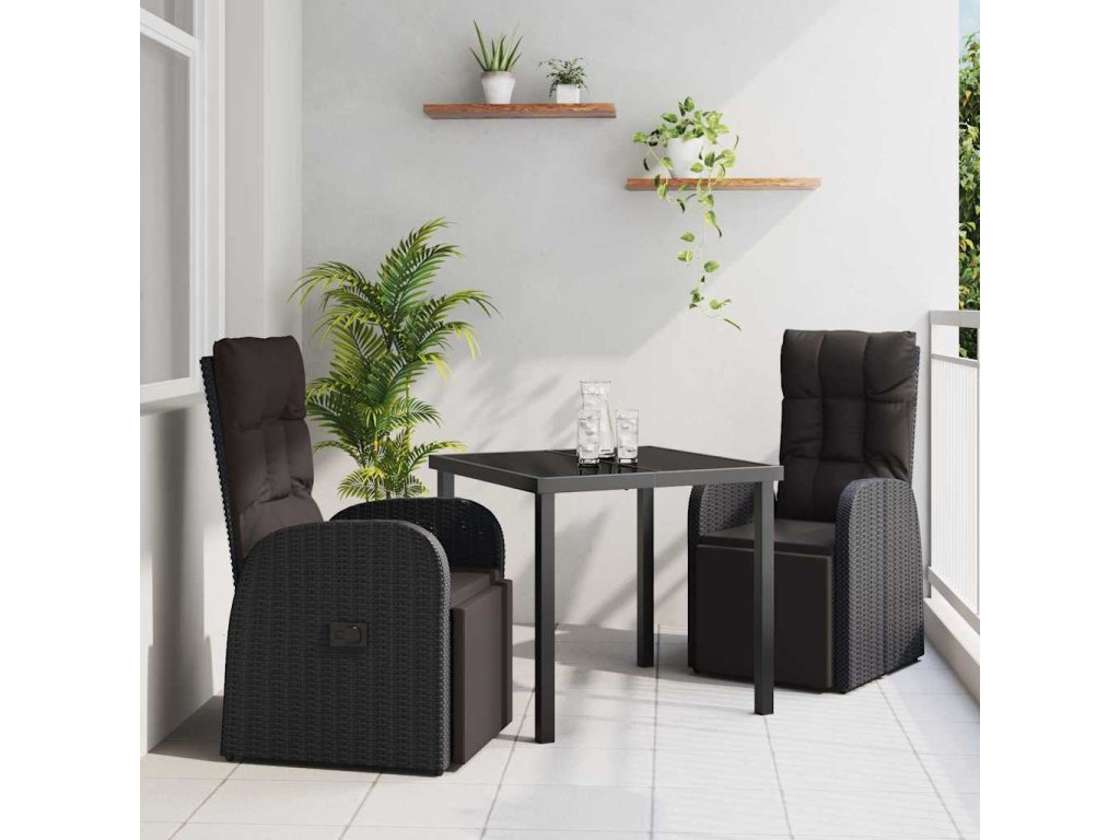 Zahradní jídelní souprava s polštářem 3 pcs Černá polyratan 3379513