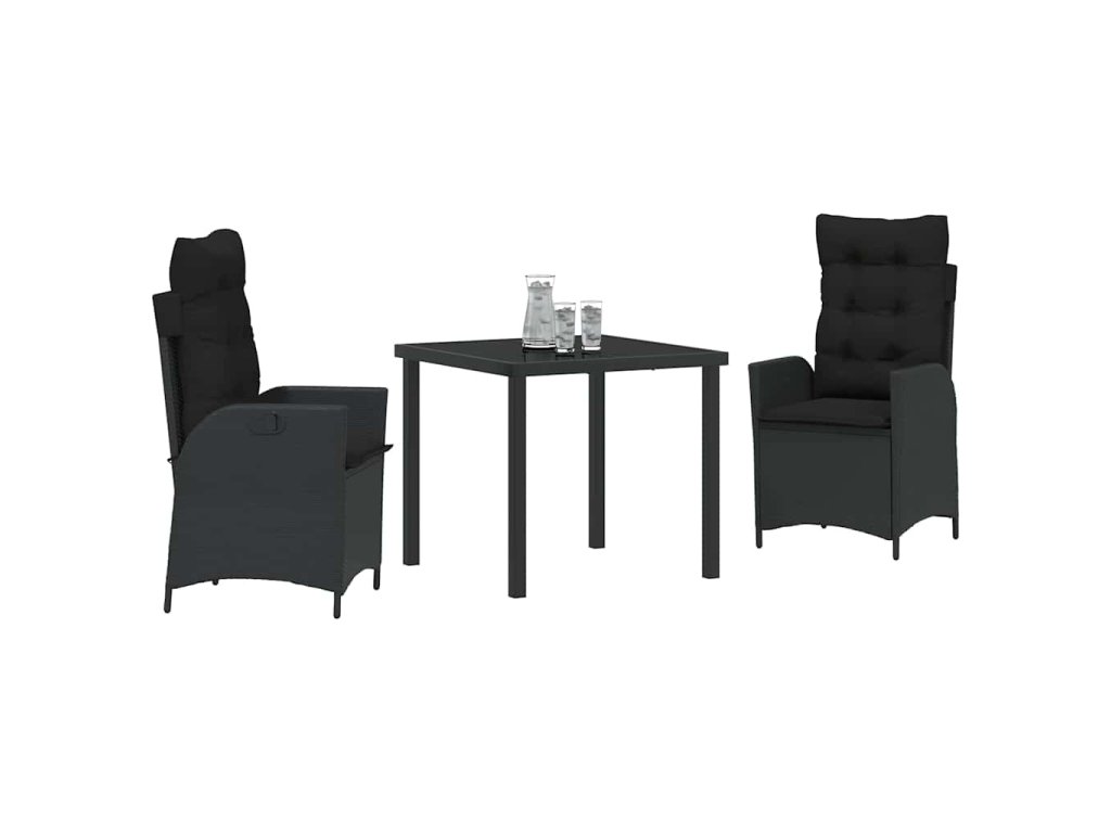 Zahradní jídelní souprava s polštářem 3 pcs Černá polyratan 3380484