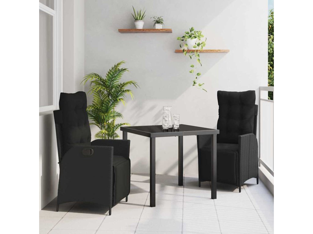 Zahradní jídelní souprava s polštářem 3 pcs Černá polyratan 3380533
