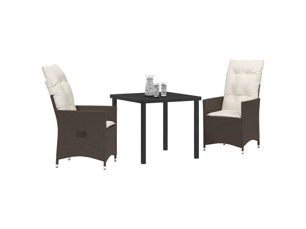 Zahradní jídelní souprava s polštářem 3 pcs Hnědá Poly ratan 3379541
