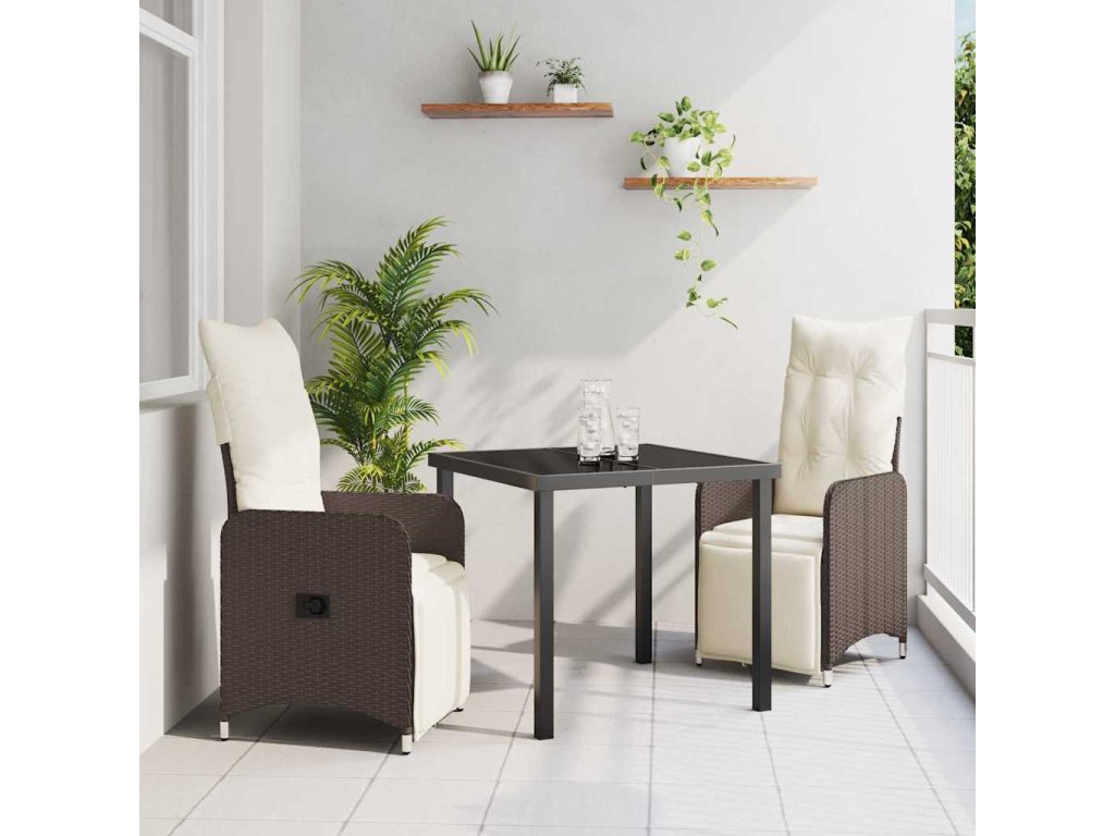 Zahradní jídelní souprava s polštářem 3 pcs Hnědá Poly ratan 3379667
