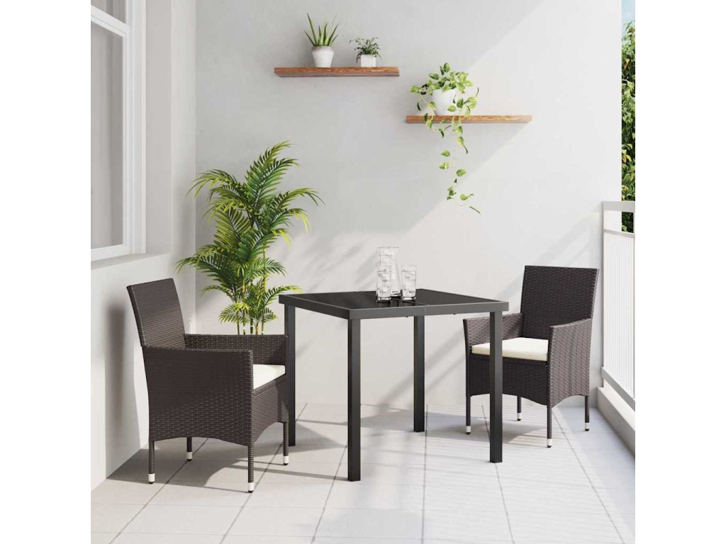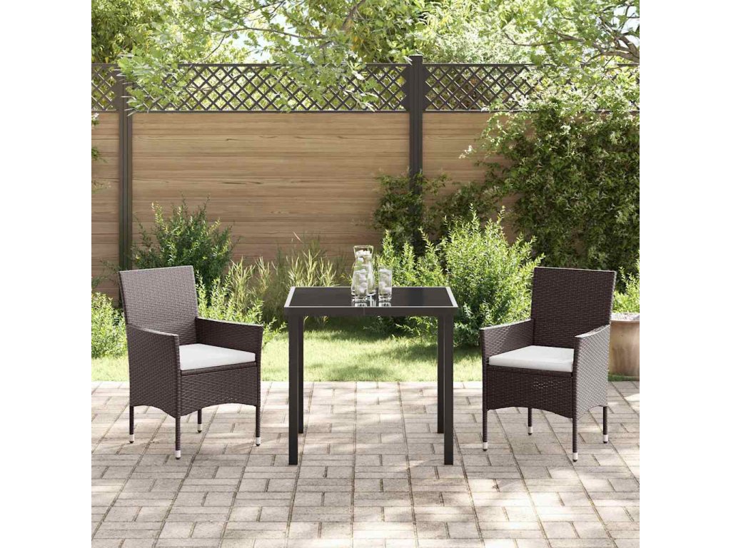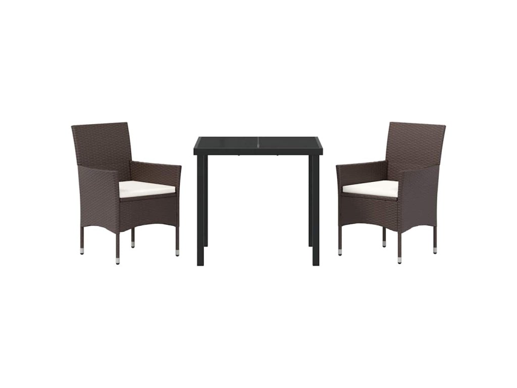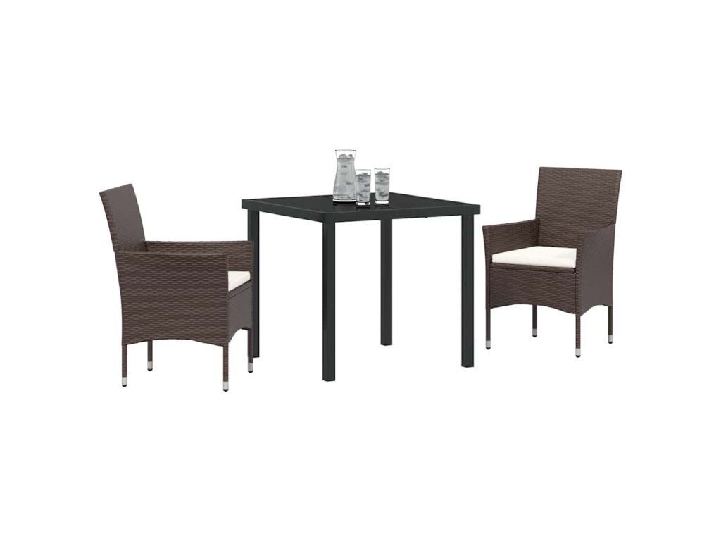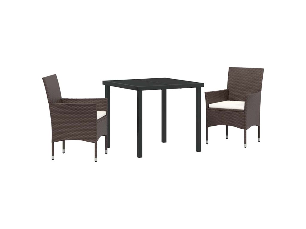 Zahradní jídelní souprava s polštářem 3 pcs Hnědá Poly ratan 3379744