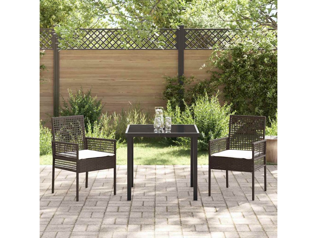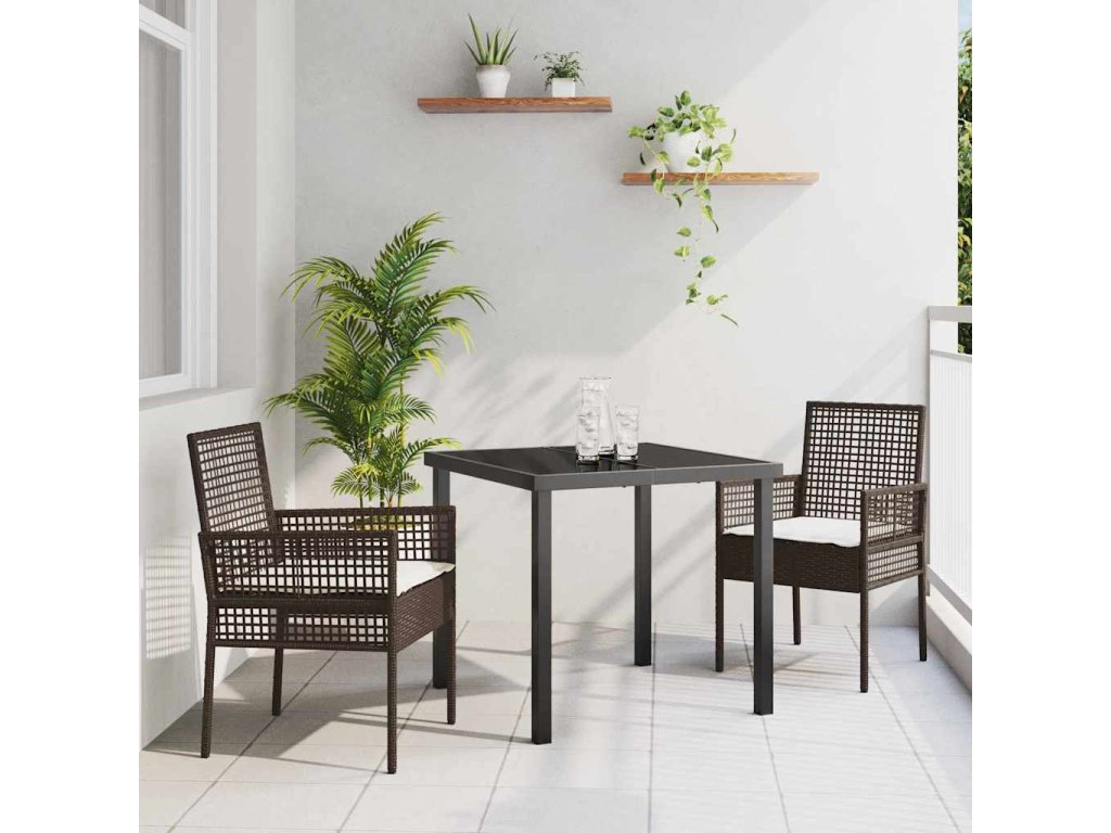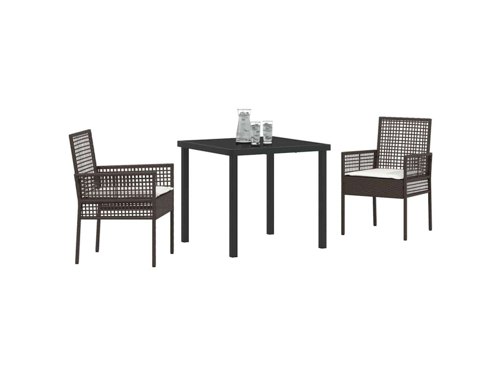 Zahradní jídelní souprava s polštářem 3 pcs Hnědá Poly ratan 3379870