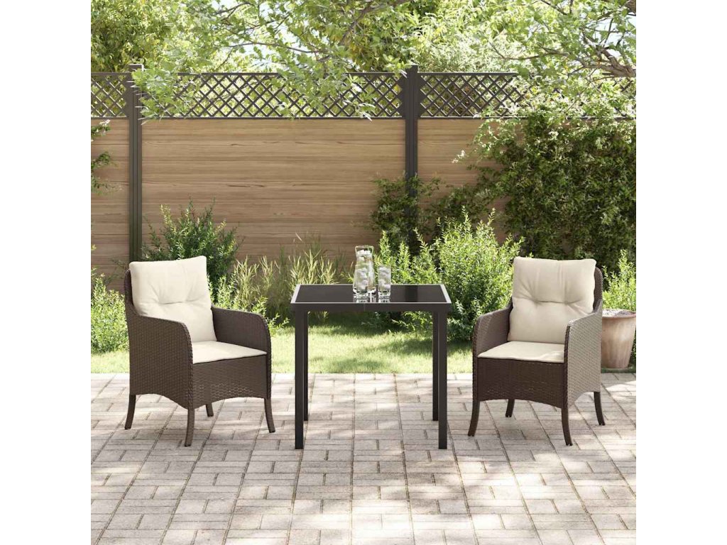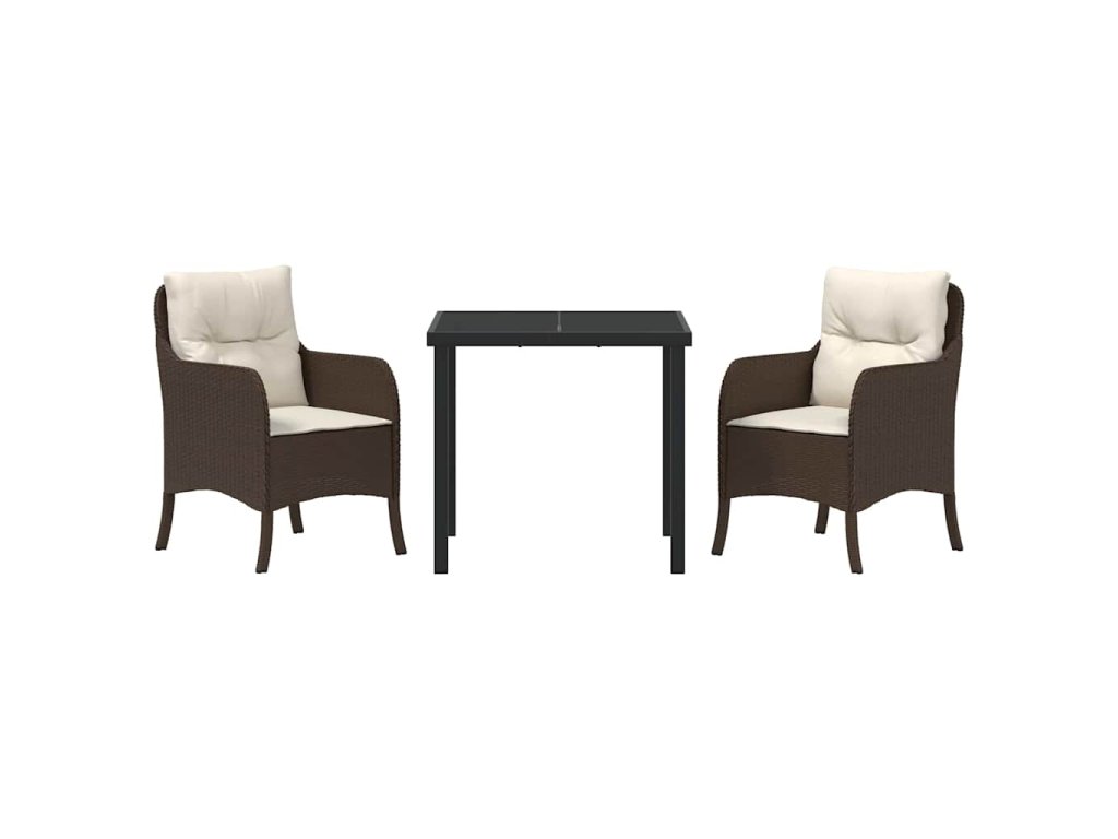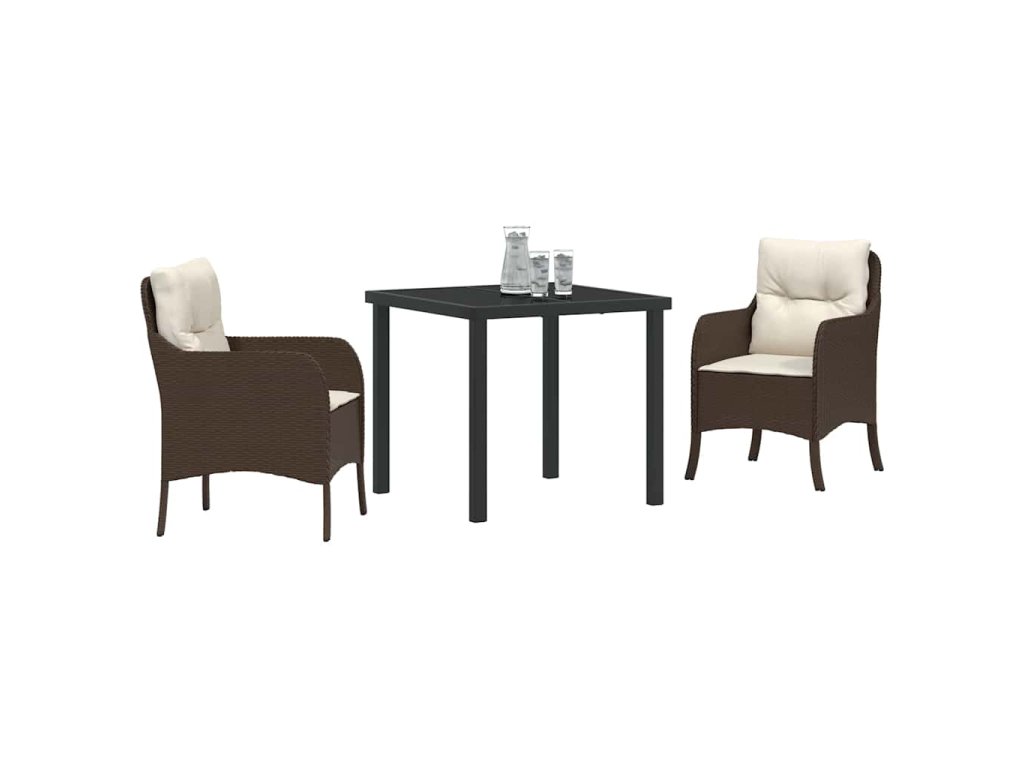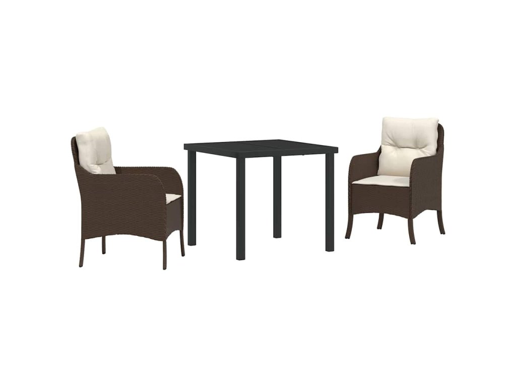 Zahradní jídelní souprava s polštářem 3 pcs Hnědá Poly ratan 3380155