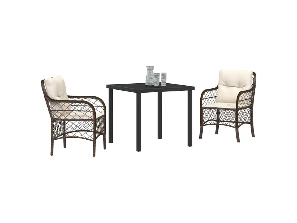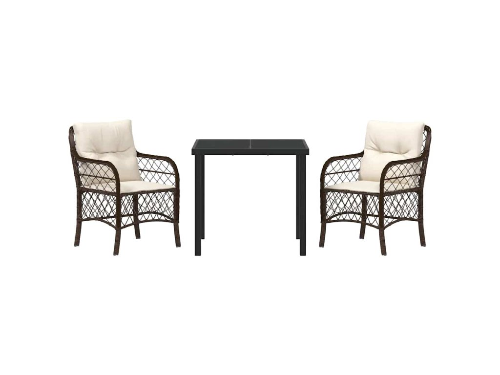 Zahradní jídelní souprava s polštářem 3 pcs Hnědá Poly ratan 3380211