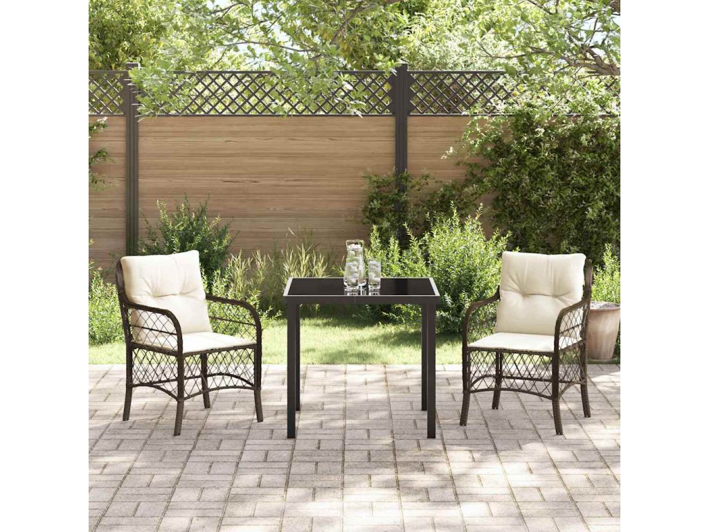 - Funkční designové prvky Set má stůl z tvrzeného skla, který spojuje styl a praktičnost. Tenhle čistý povrch udržuje vzhled v pěkném stavu a poskytuje pevné místo pro jídlo a pití. Je navíc odolný vůči špatnému počasí, což zvyšuje jeho trvanlivost.