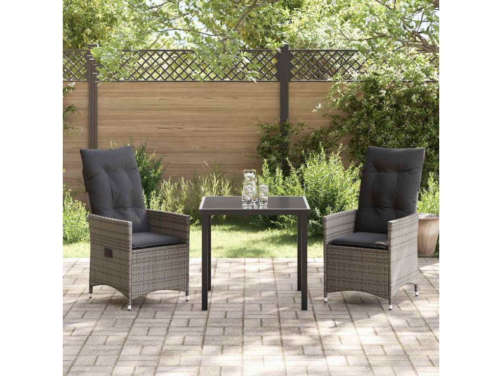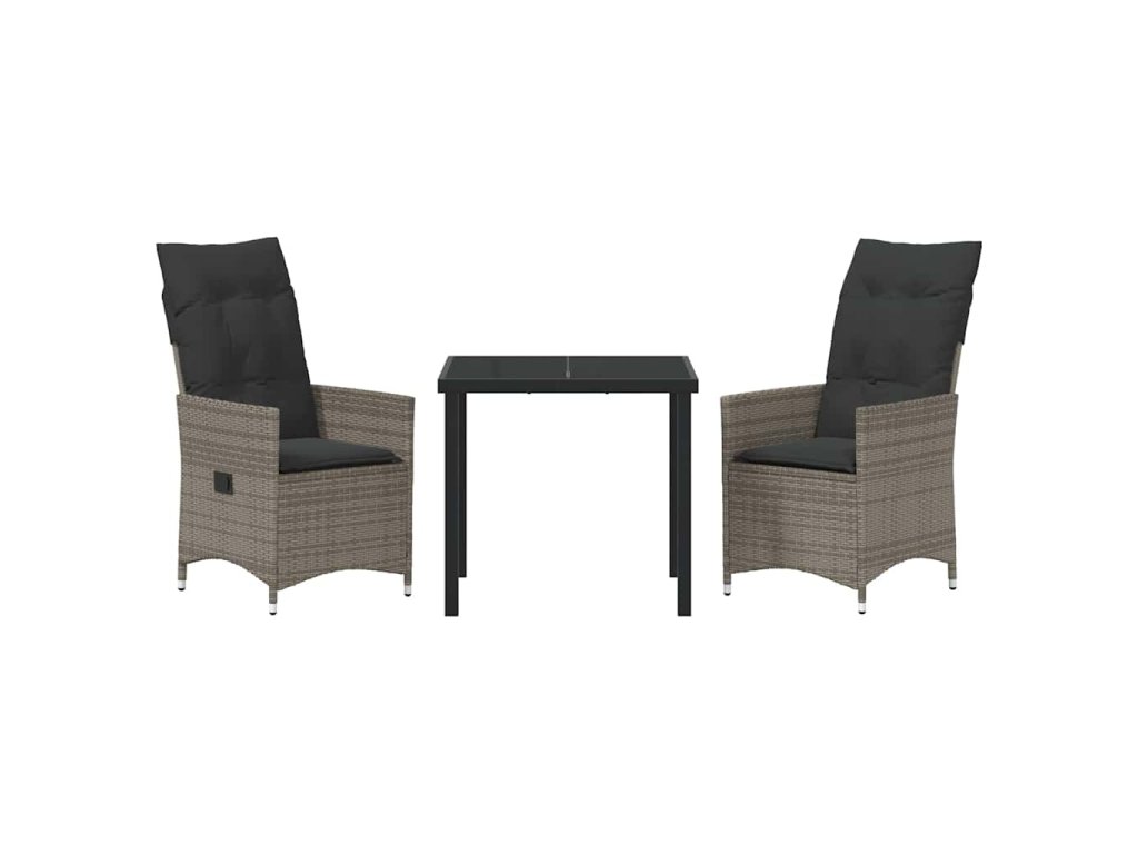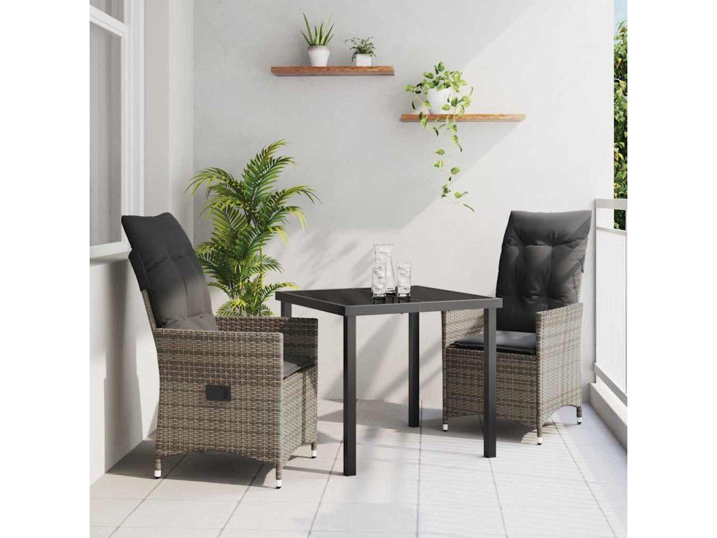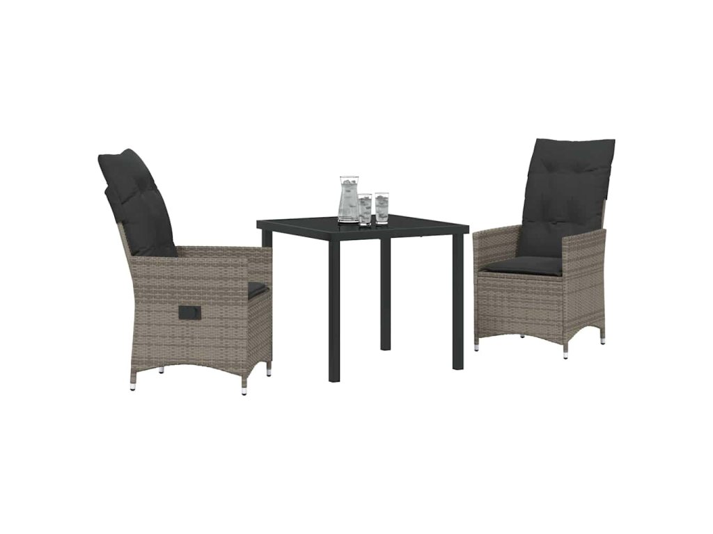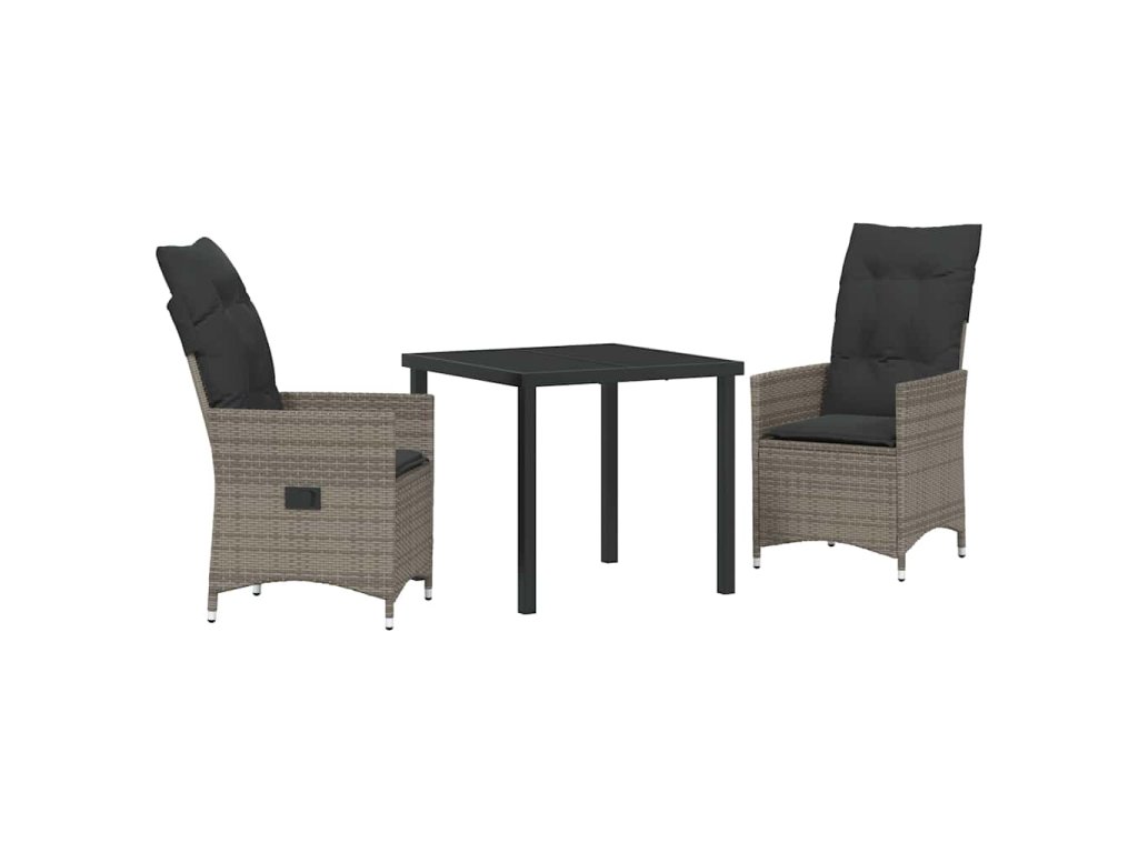Zahradní jídelní souprava s polštářem 3 pcs Šedá Poly ratan 3379548