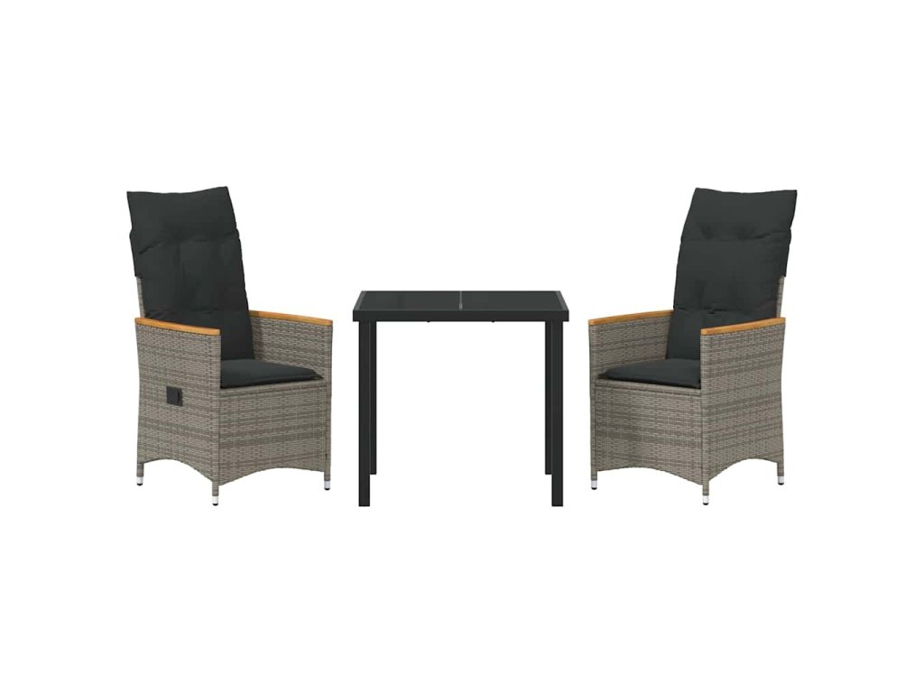 Zahradní jídelní souprava s polštářem 3 pcs Šedá Poly ratan 3379618