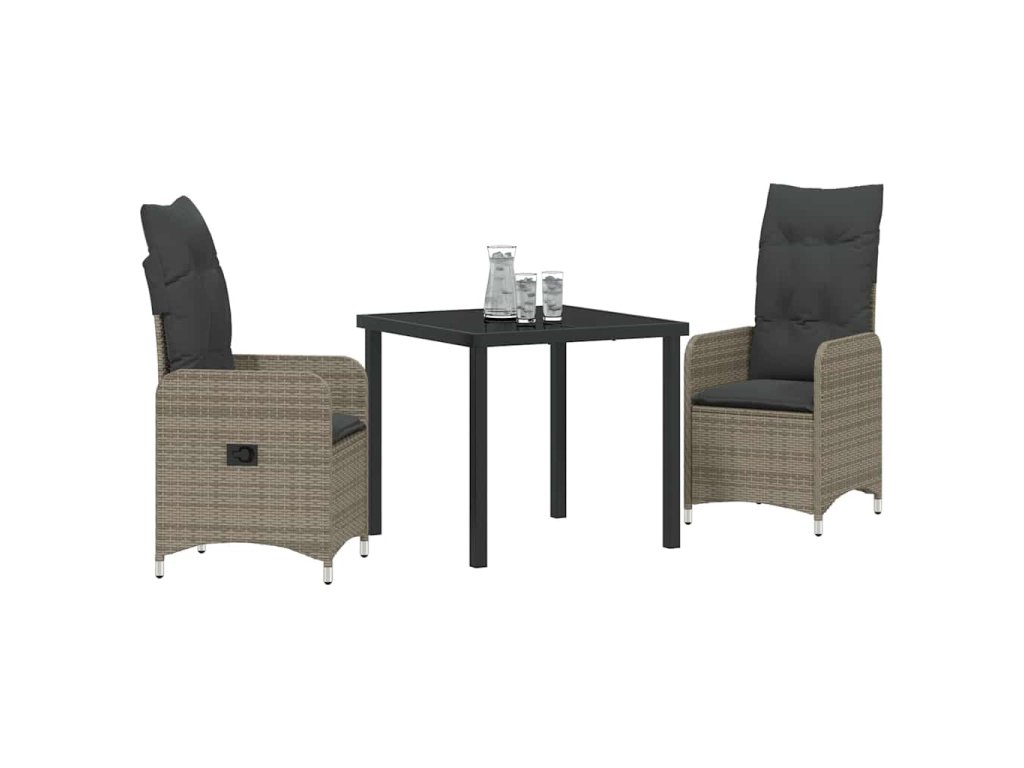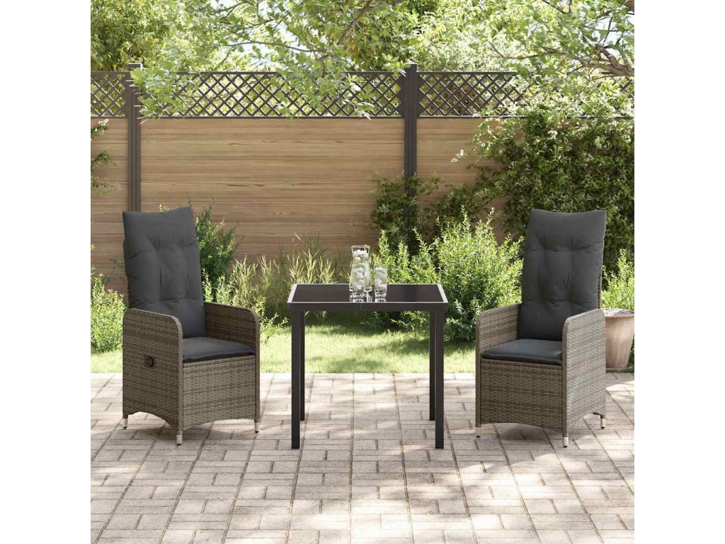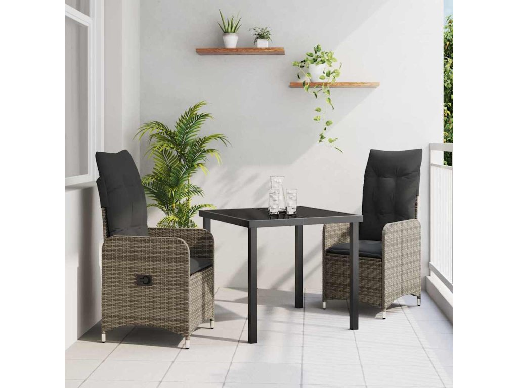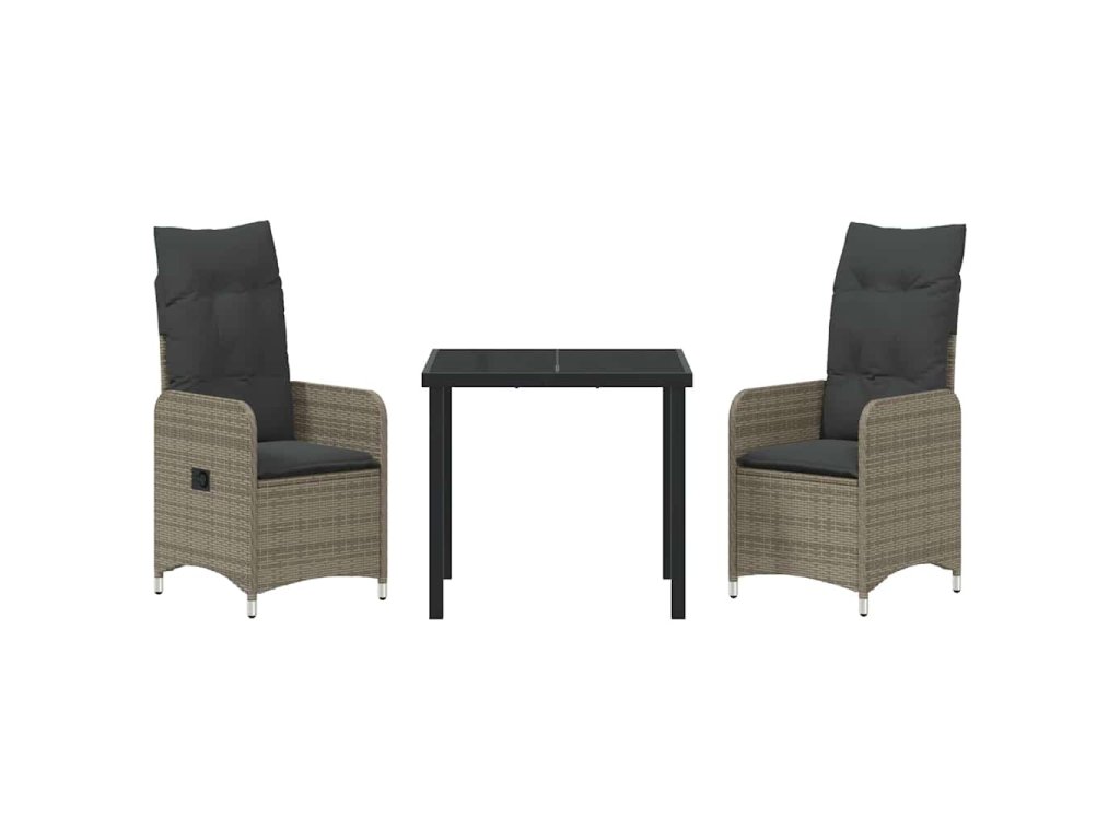 Zahradní jídelní souprava s polštářem 3 pcs Šedá Poly ratan 3379646