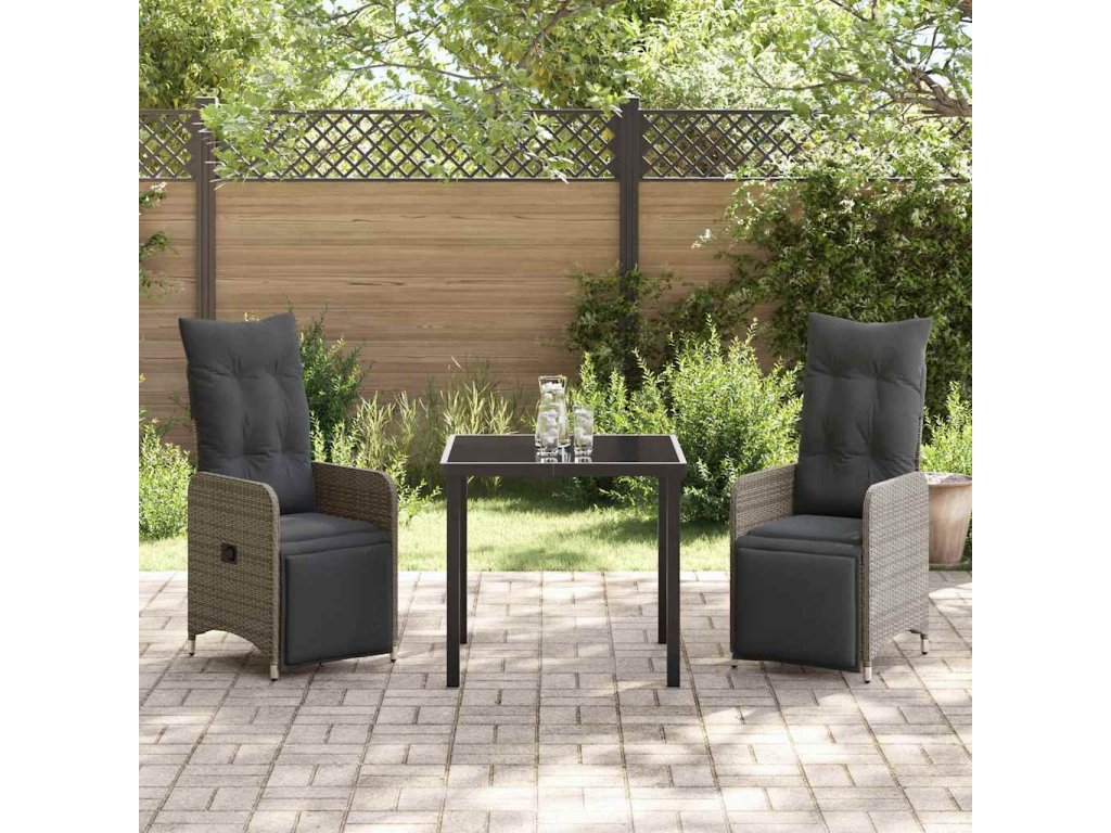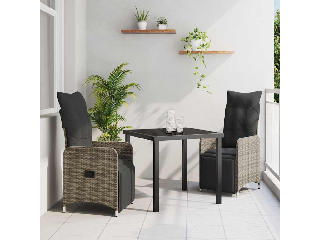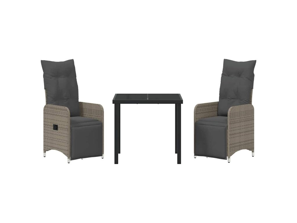 Zahradní jídelní souprava s polštářem 3 pcs Šedá Poly ratan 3379674