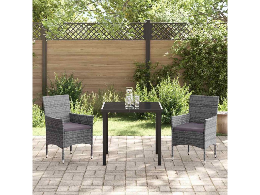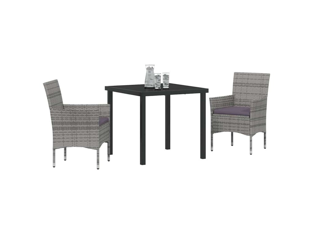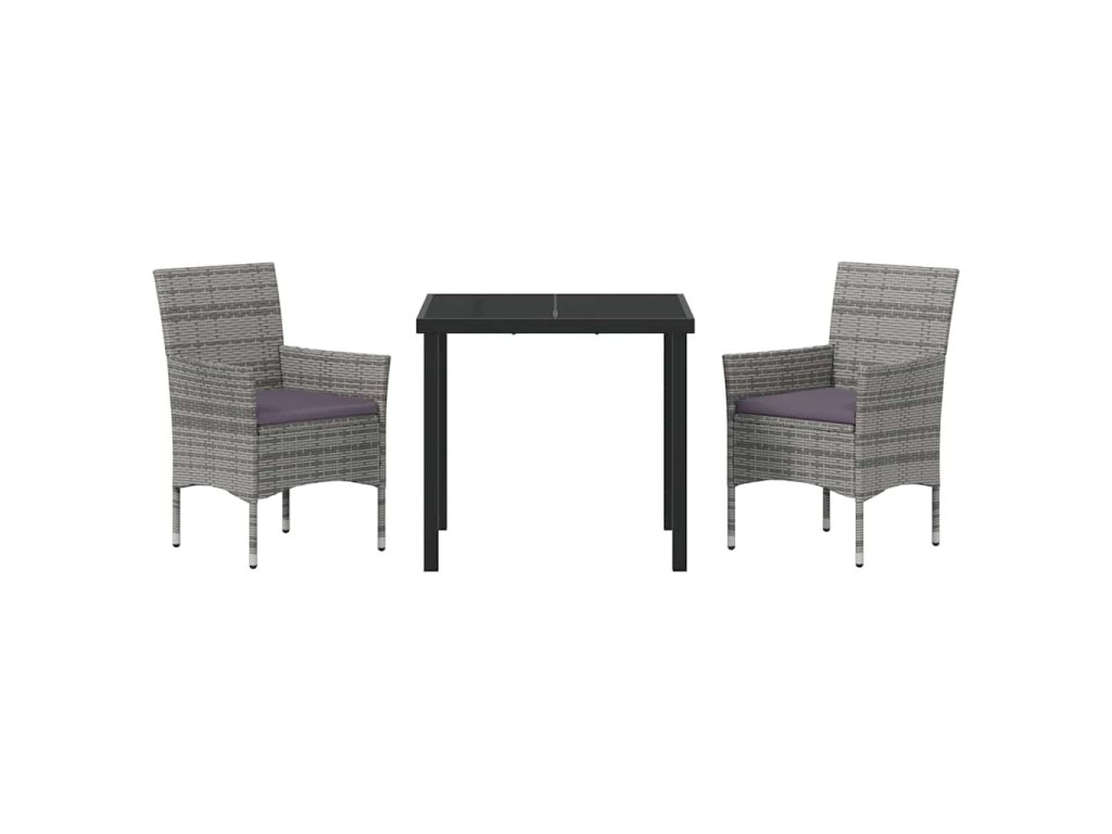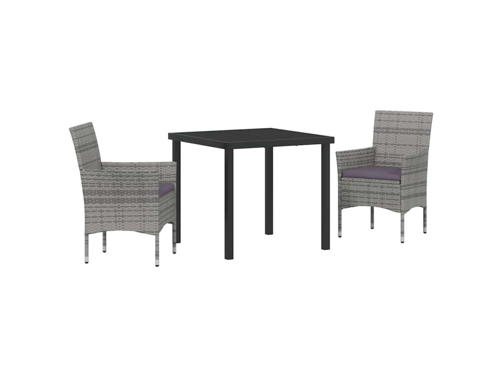 Zahradní jídelní souprava s polštářem 3 pcs Šedá Poly ratan 3379730