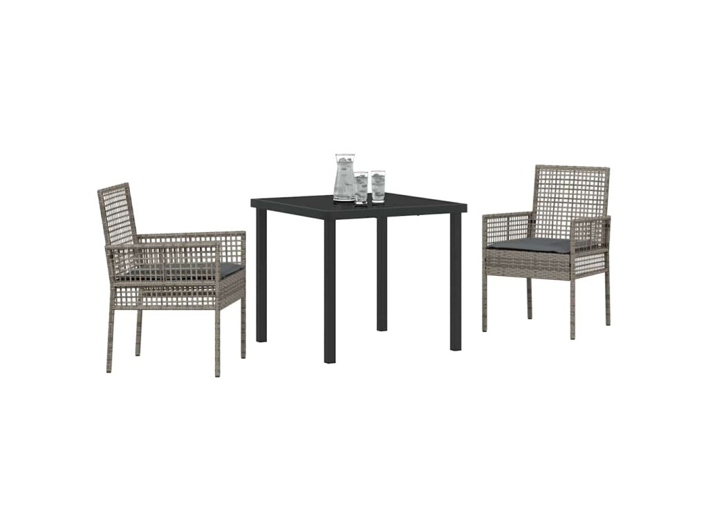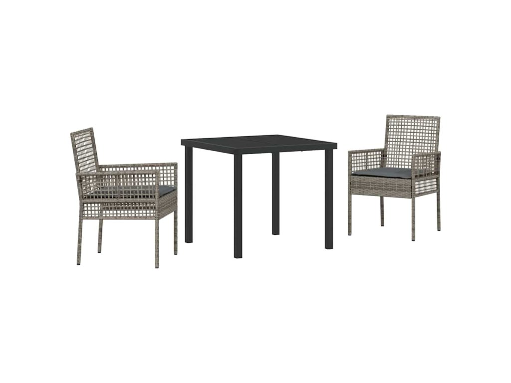 Zahradní jídelní souprava s polštářem 3 pcs Šedá Poly ratan 3379877