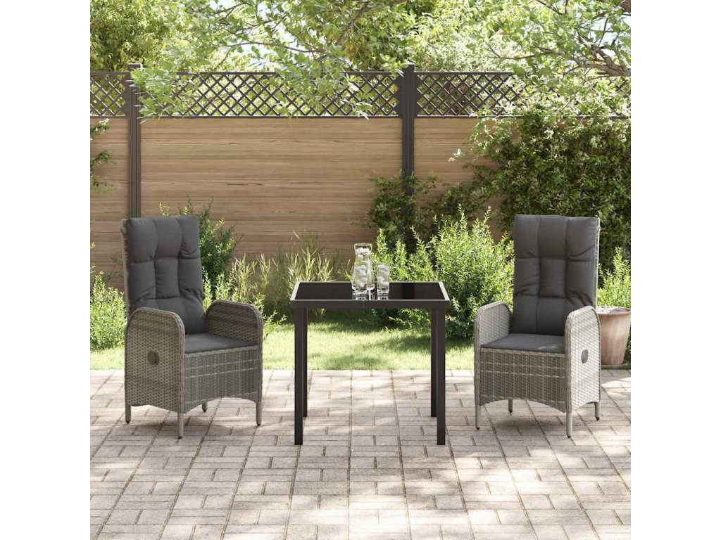 Zahradní jídelní souprava s polštářem 3 pcs Šedá Poly ratan 3380127