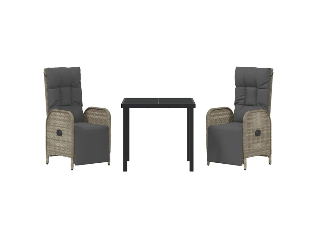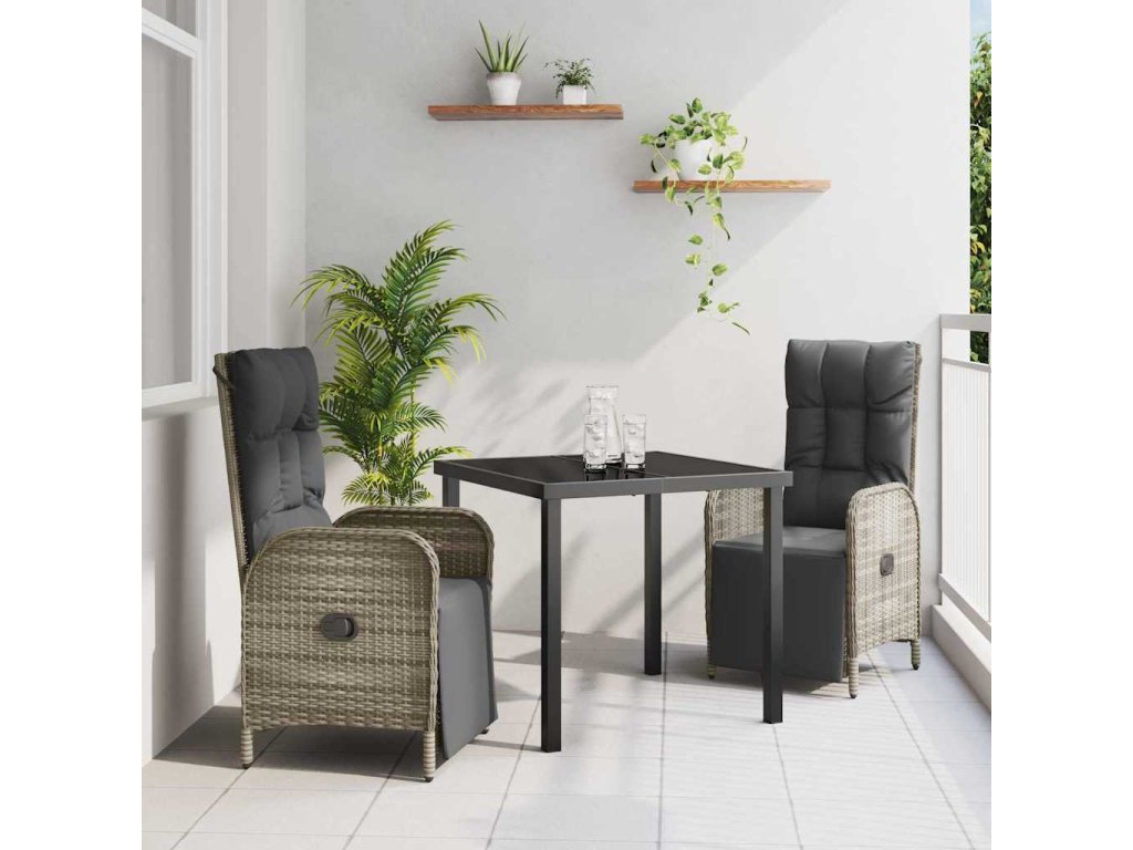Zahradní jídelní souprava s polštářem 3 pcs Šedá Poly ratan 3380134