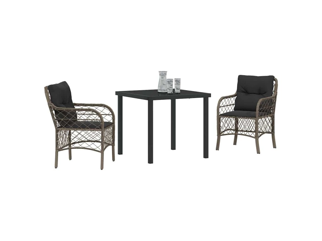 Zahradní jídelní souprava s polštářem 3 pcs Šedá Poly ratan 3380218