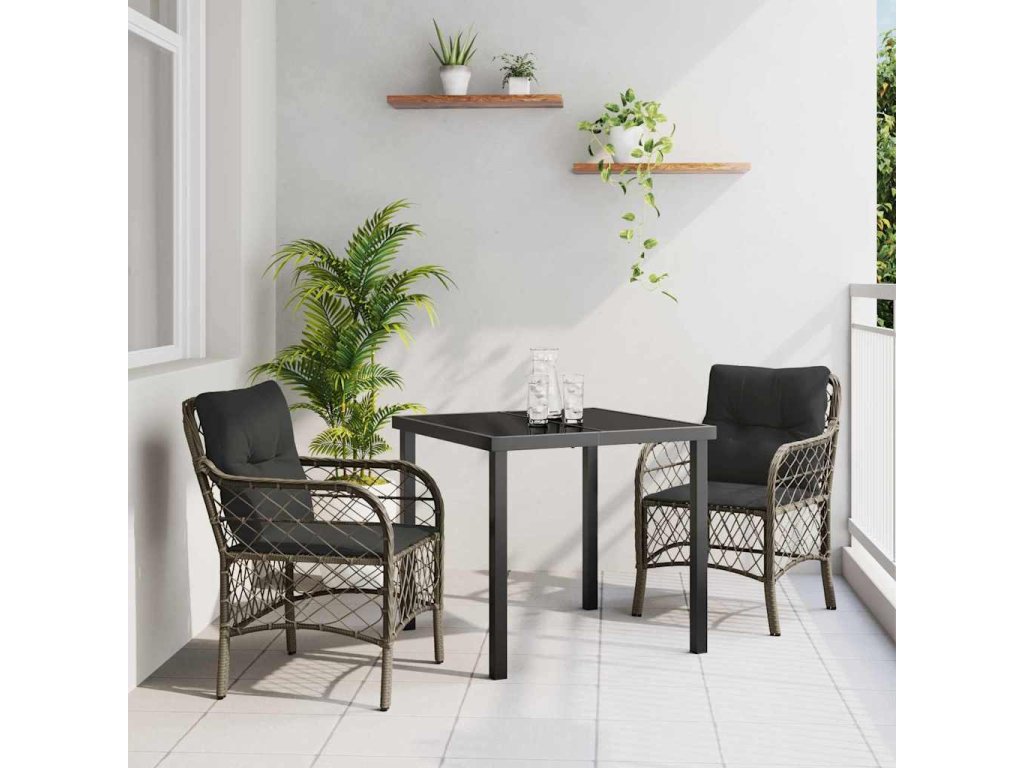 - Funkční designové prvky Set má stůl z tvrzeného skla, který spojuje styl a praktičnost. Tenhle čistý povrch udržuje vzhled v pěkném stavu a poskytuje pevné místo pro jídlo a pití. Je navíc odolný vůči špatnému počasí, což zvyšuje jeho trvanlivost.