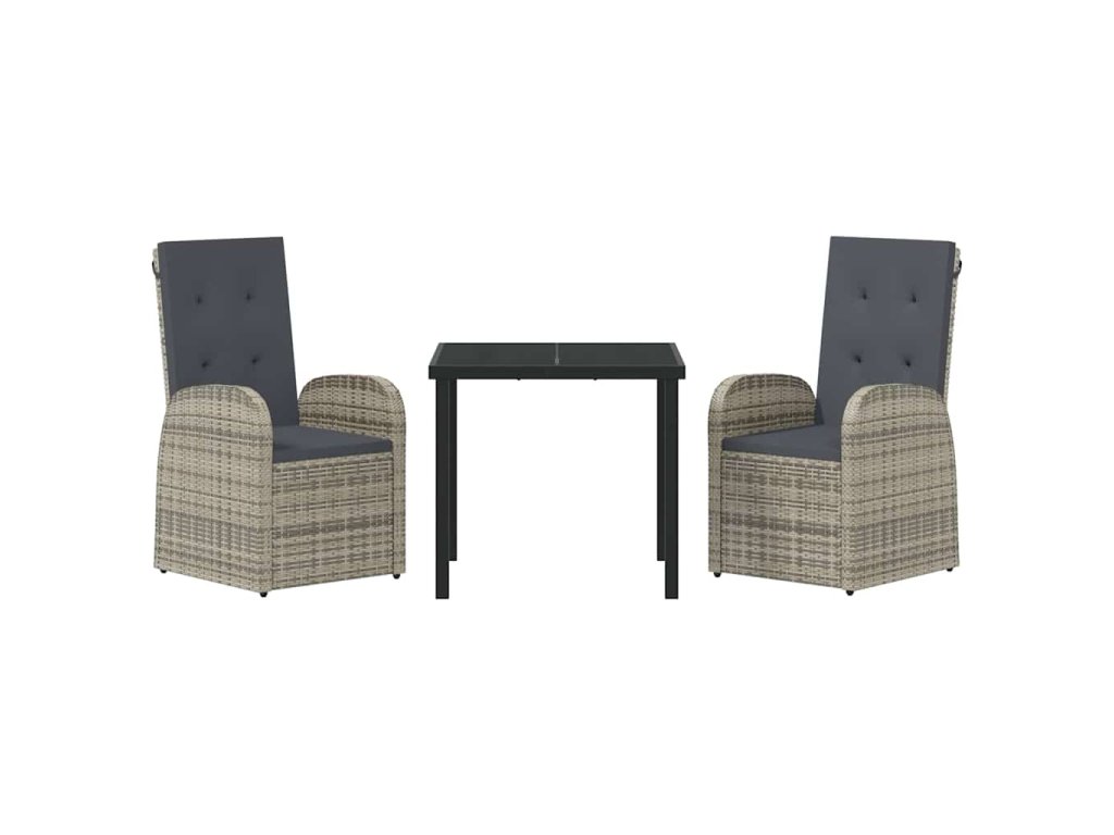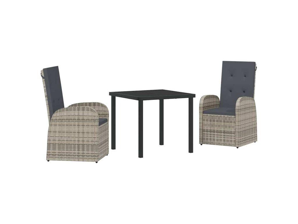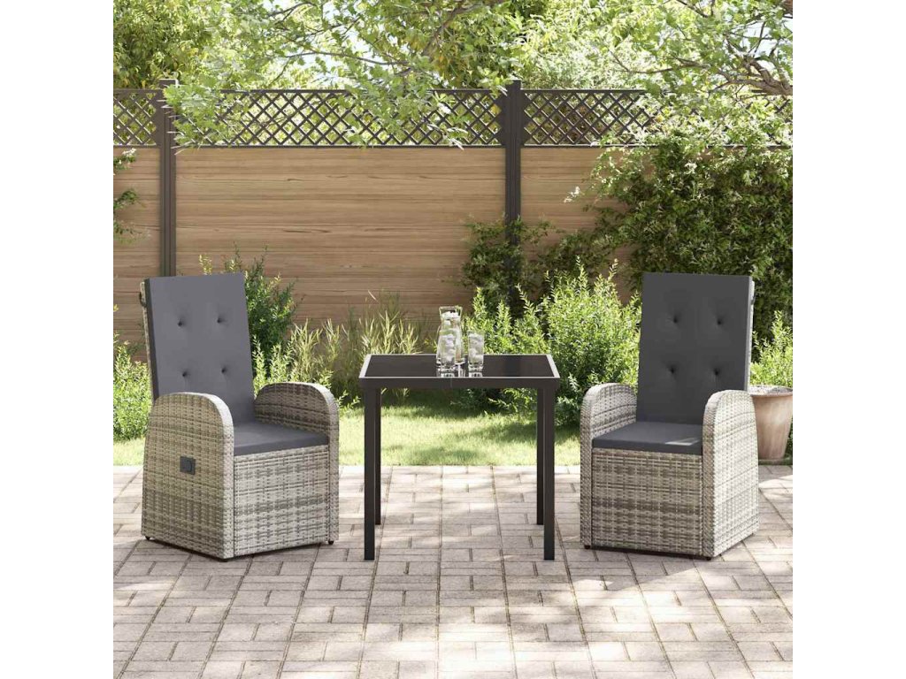 Materiály: Tento zahradní set je vyrobený z polyratanu a práškované oceli, takže je silný a připravený na jakékoli počasí. Víš, že je navržen tak, aby vydržel a snadno se udržoval. Tyto materiály působí prémiově a zvládají UV záření i déšť. Součásti: Set přichází s vyjímatelnými polštáři s zipy, pohodlnými opěrkami rukou a stolní deskou z tvrzeného skla, která dodává eleganci a zajišťuje praktický a stylový prvek pro jakoukoli venkovní akci. Vlastnosti / Funkce / Design: Sklopná funkce ti umožní si odpočinout a relaxovat, jak se ti líbí, ať už je to na lenošivé odpoledne nebo na společenském setkání. Práškovaný rám zajišťuje trvanlivost a dodává tvému venkovnímu prostoru styl. Doporučené použití: Skvělý pro terasy, zahrady a balkony, tento flexibilní nábytek je ideální pro jakékoliv akce i prosté lenošení. Hodí se všude, a proto je ideální volbou pro každého, kdo chce užívat svůj venkovní prostor. Údržba: Aby tvůj nábytek vypadal skvěle, používej ochranný kryt, když není počasí příznivé. Přenos polštářů dovnitř během špatného počasí pomáhá jejich dlouhé životnosti a vyhýbej se používání silných čisticích prostředků.- Barva: Šedá
