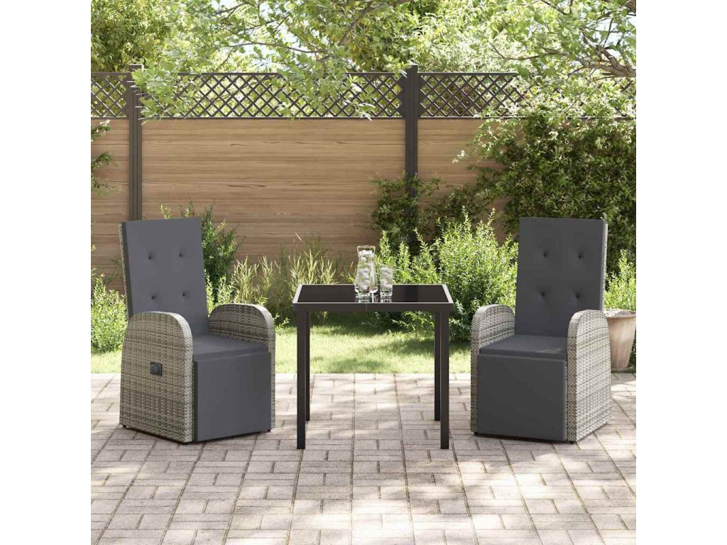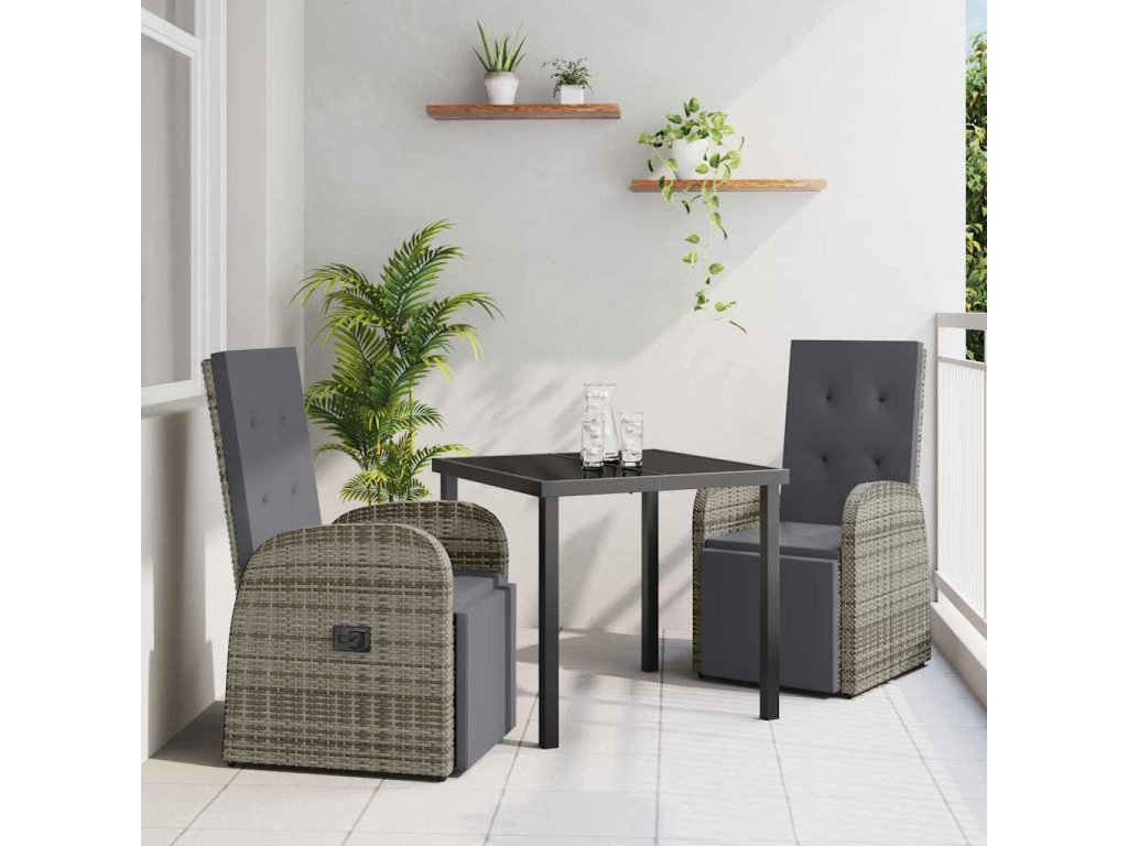 Zahradní jídelní souprava s polštářem 3 pcs Šedá polyratan 3379485