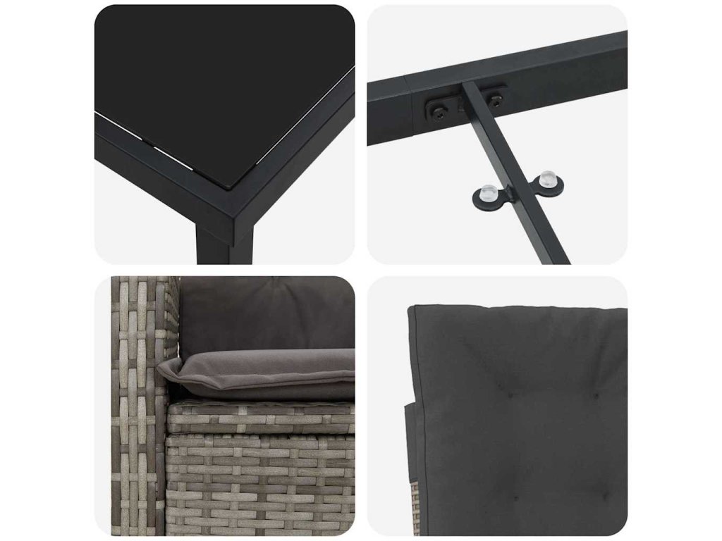 Pohodlný design Nabízí moderní estetiku a využitelnost Pohodlné sezení Obsahuje polstrované sedáky pro větší pohodlí Odolná konstrukce Ocelové části zajišťují trvalou oporu Odolnost vůči počasí Perfektní pro letní venkovní použití- Barva: Šedá