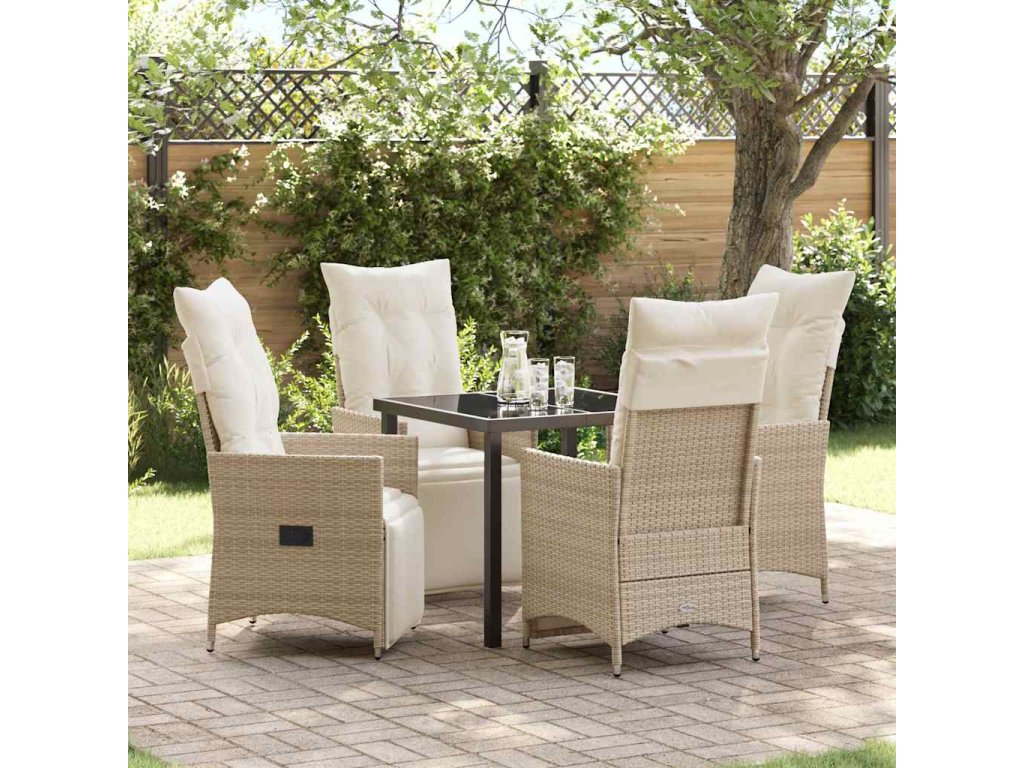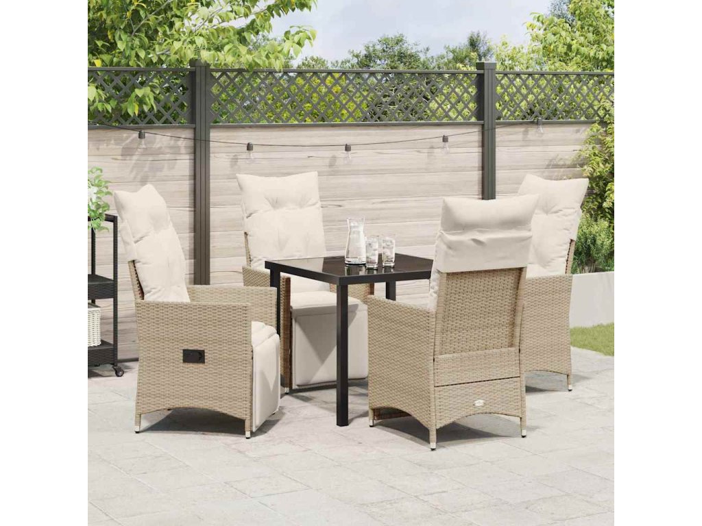 Zahradní jídelní souprava s polštářem 5 pcs Béžová Poly ratan 3379584