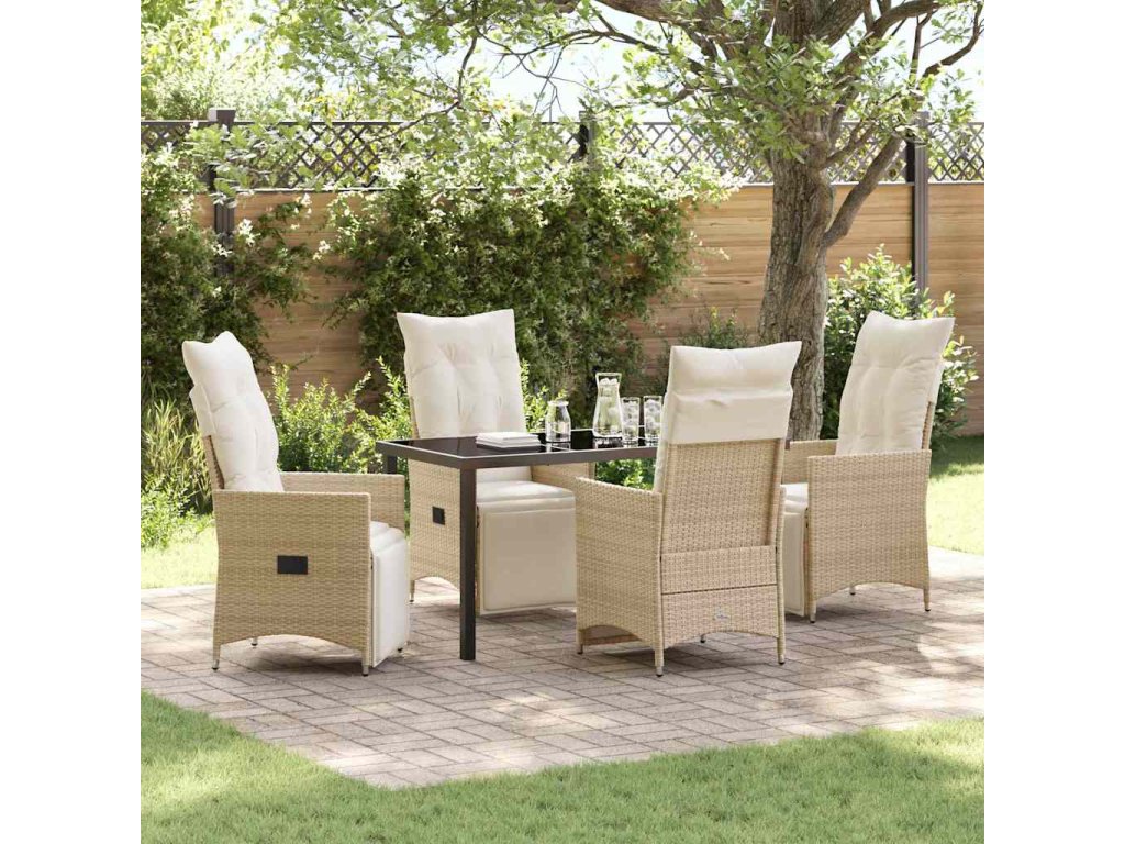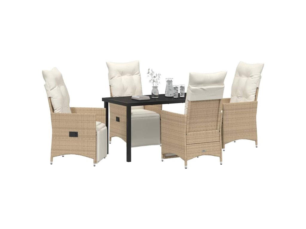 Zahradní jídelní souprava s polštářem 5 pcs Béžová Poly ratan 3379585