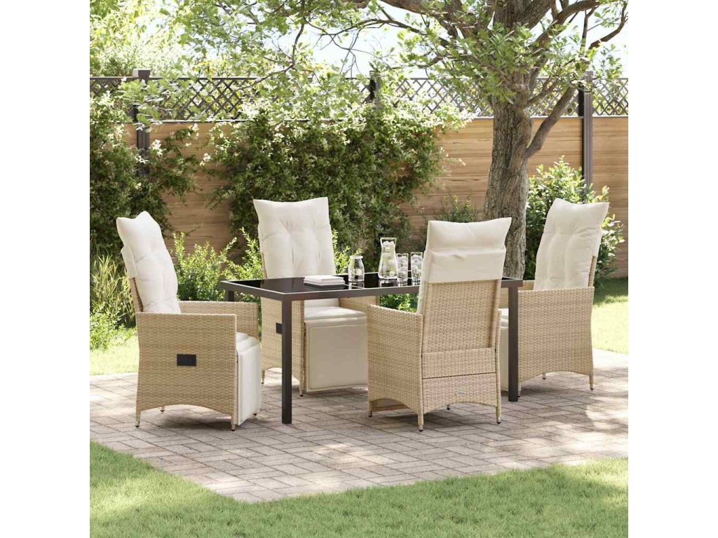 Zahradní jídelní souprava s polštářem 5 pcs Béžová Poly ratan 3379586