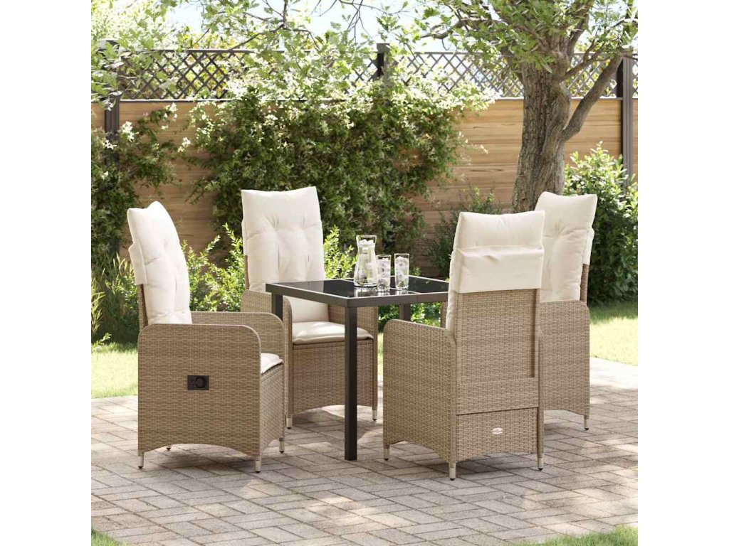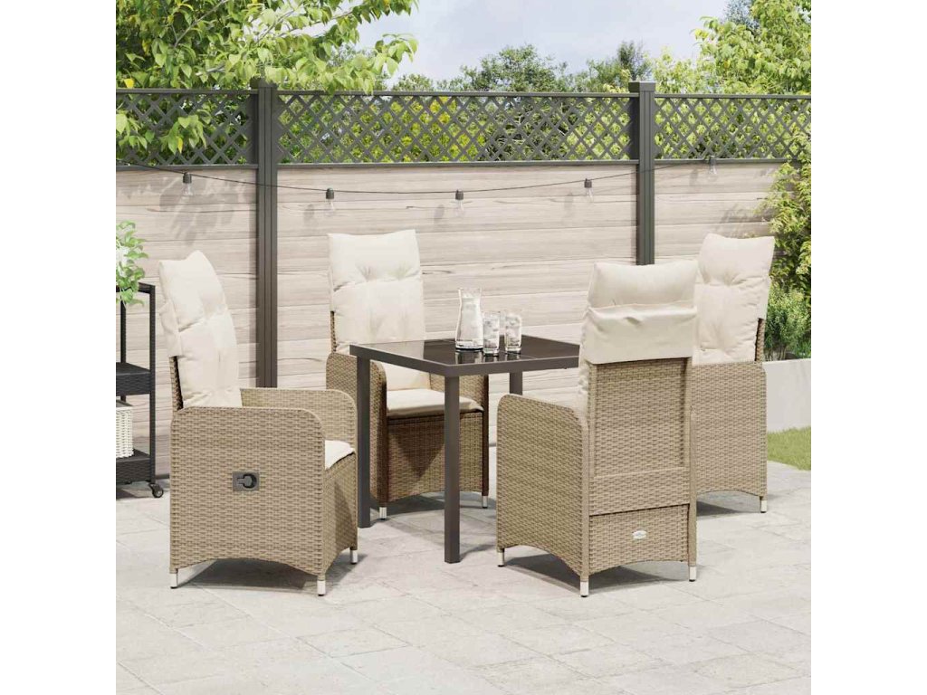 Zahradní jídelní souprava s polštářem 5 pcs Béžová Poly ratan 3379654