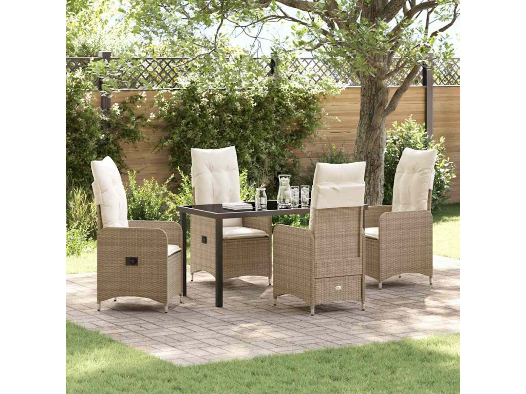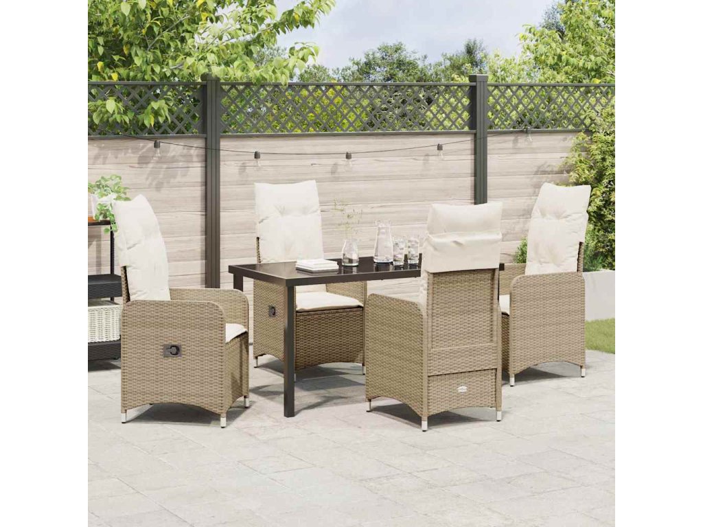 Zahradní jídelní souprava s polštářem 5 pcs Béžová Poly ratan 3379655