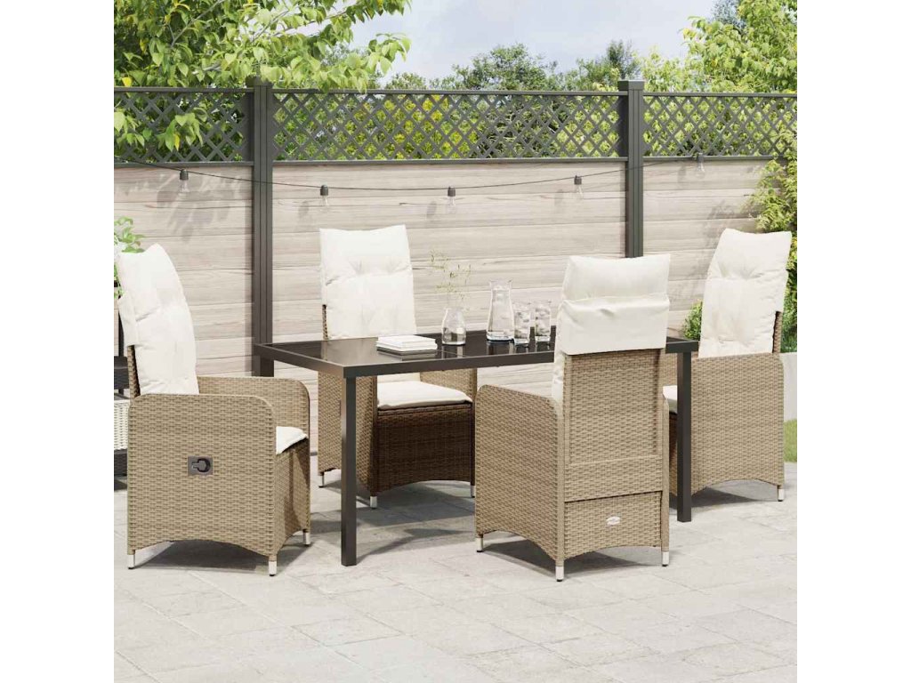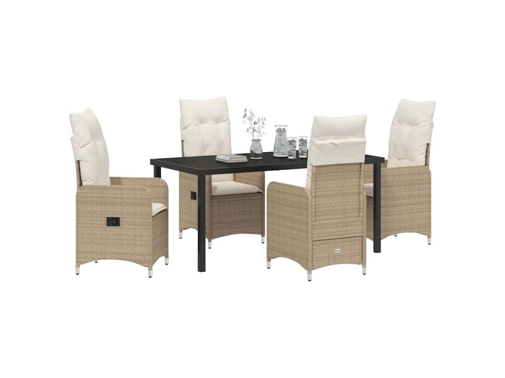 Zahradní jídelní souprava s polštářem 5 pcs Béžová Poly ratan 3379656