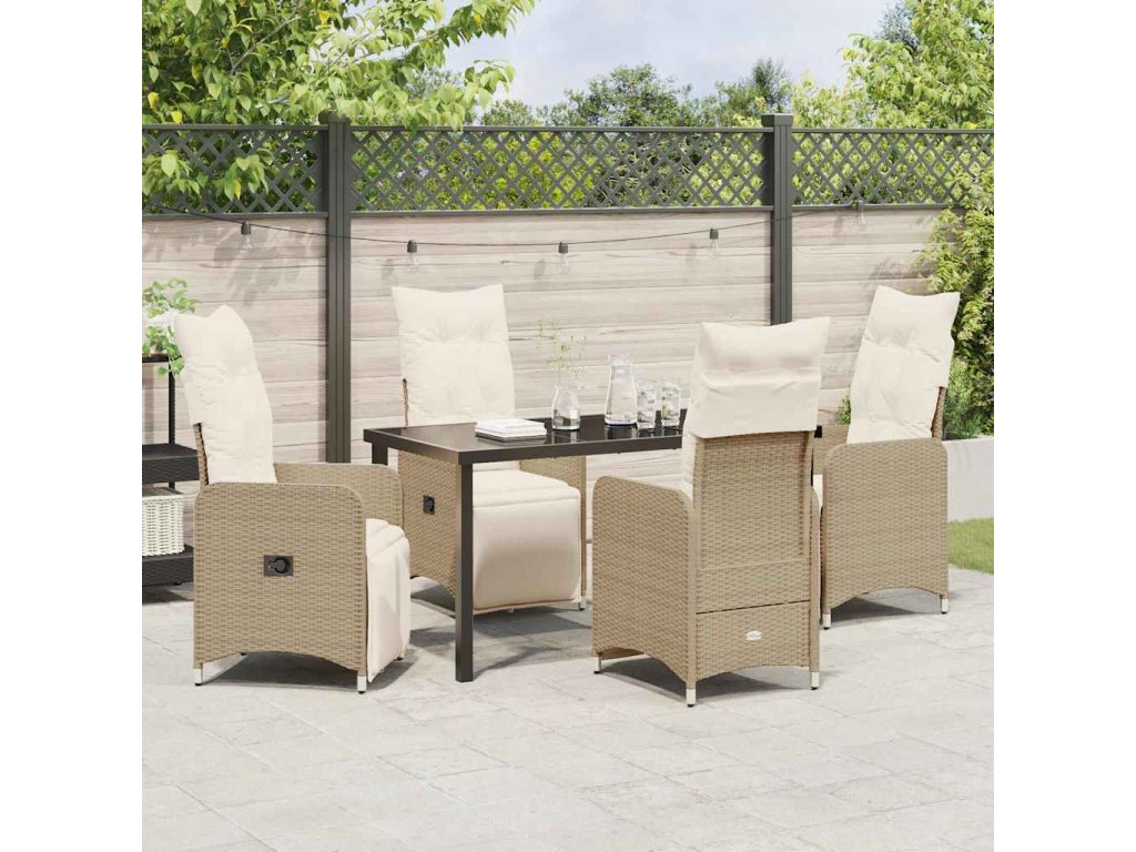 Zahradní jídelní souprava s polštářem 5 pcs Béžová Poly ratan 3379683