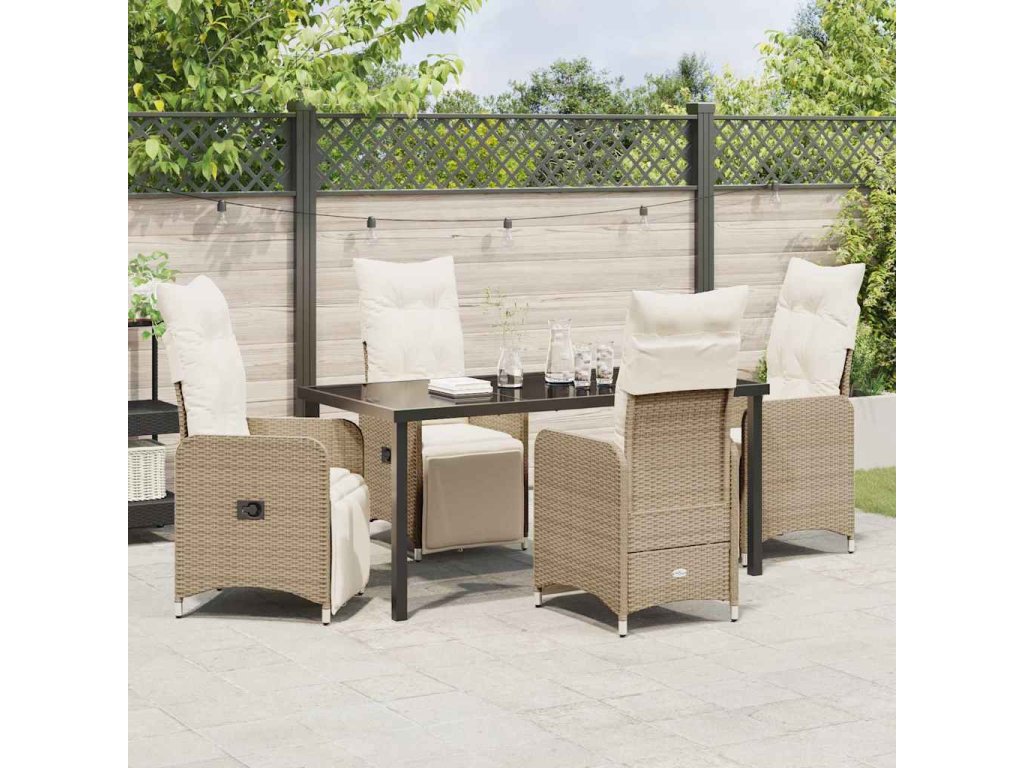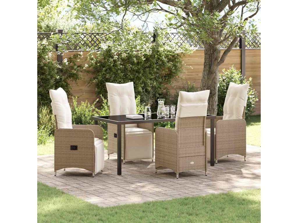 Zahradní jídelní souprava s polštářem 5 pcs Béžová Poly ratan 3379684