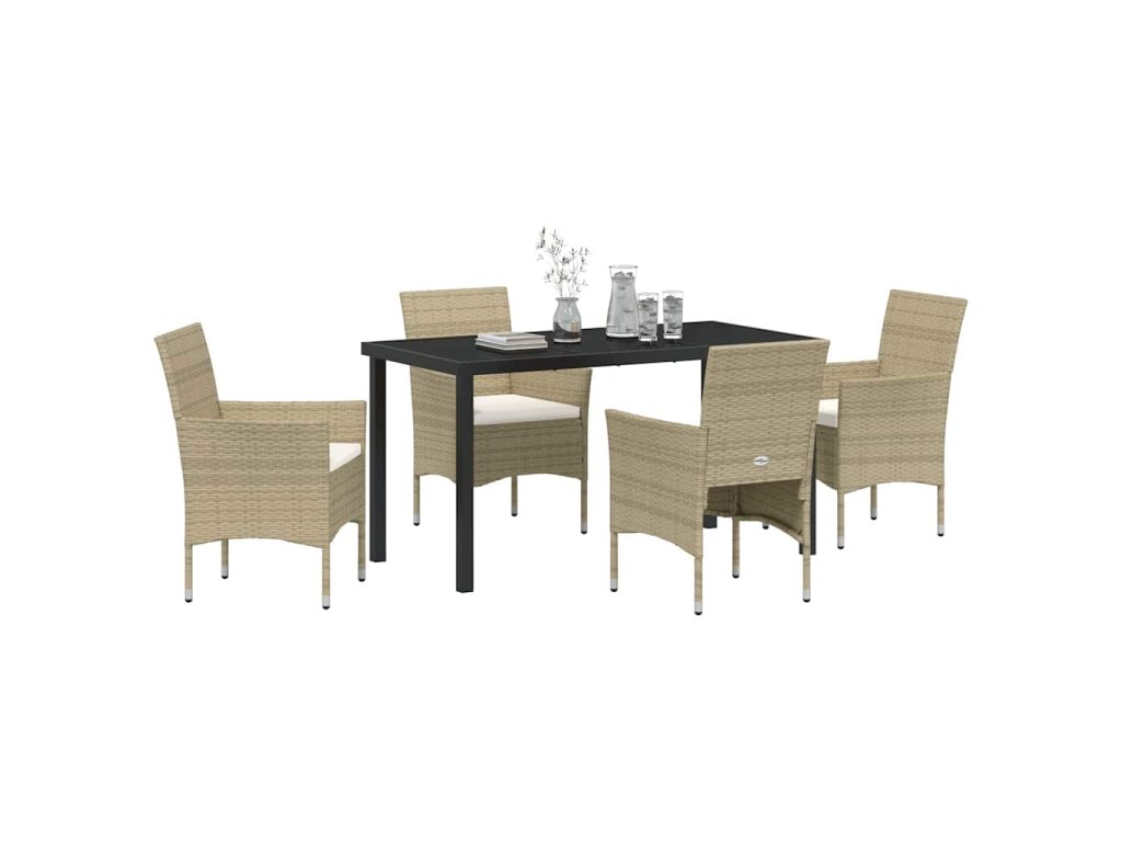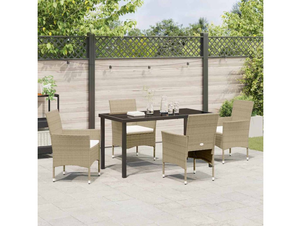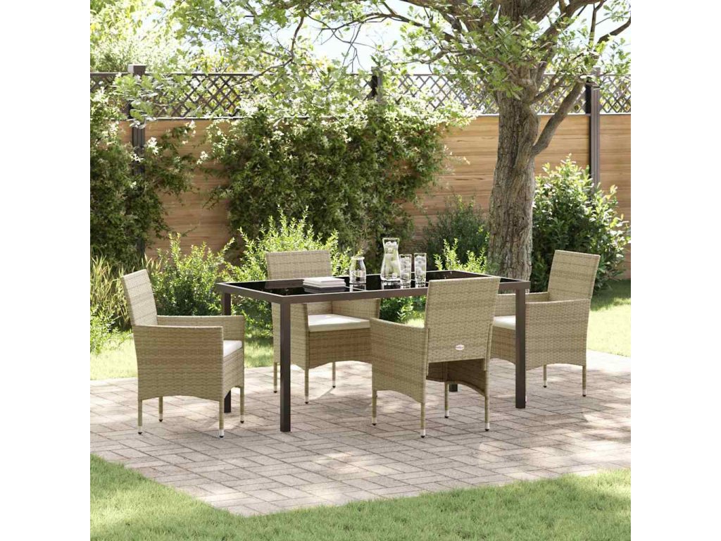 Zahradní jídelní souprava s polštářem 5 pcs Béžová Poly ratan 3379739