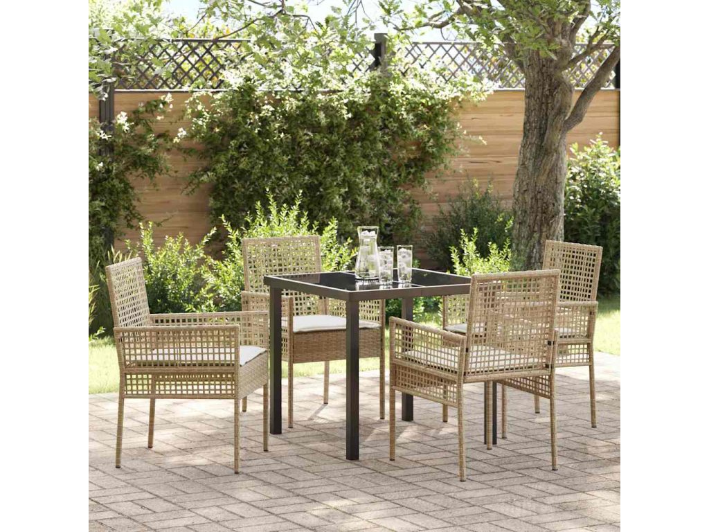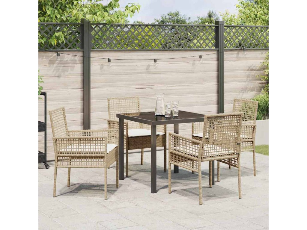 Zahradní jídelní souprava s polštářem 5 pcs Béžová Poly ratan 3379892