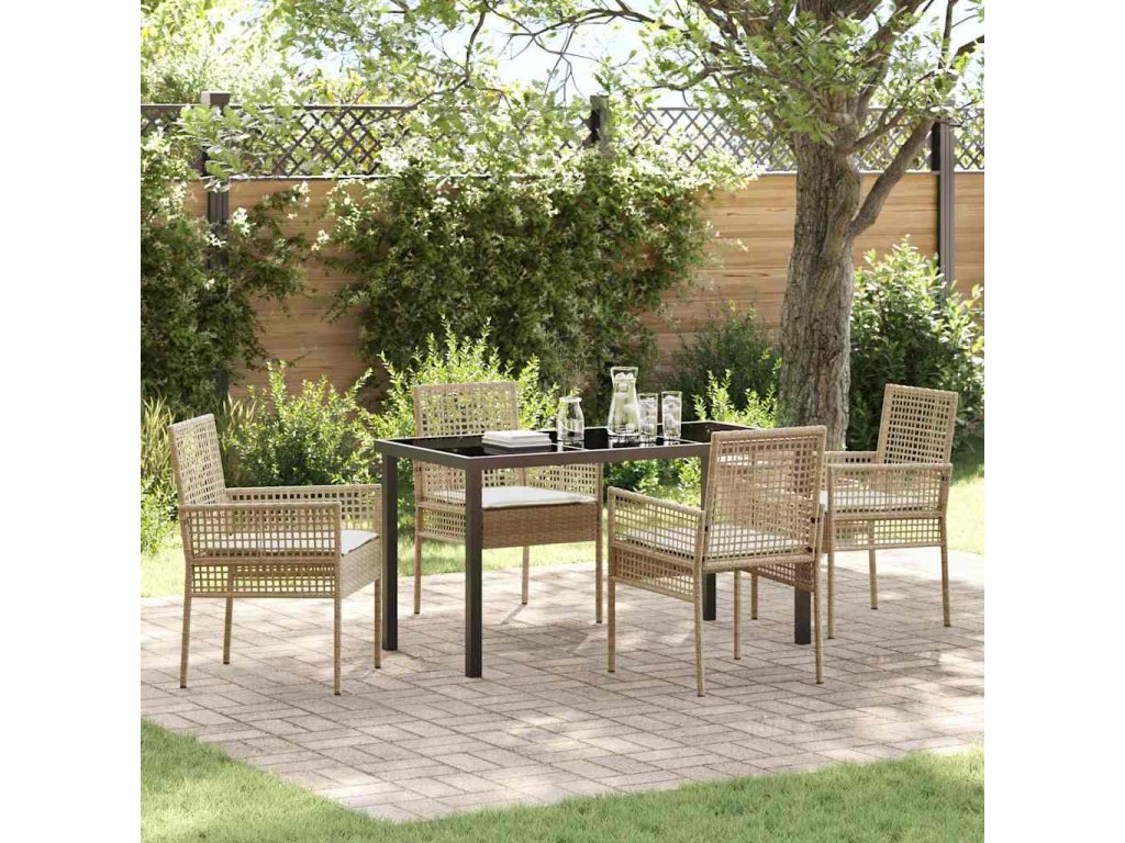 Zahradní jídelní souprava s polštářem 5 pcs Béžová Poly ratan 3379893
