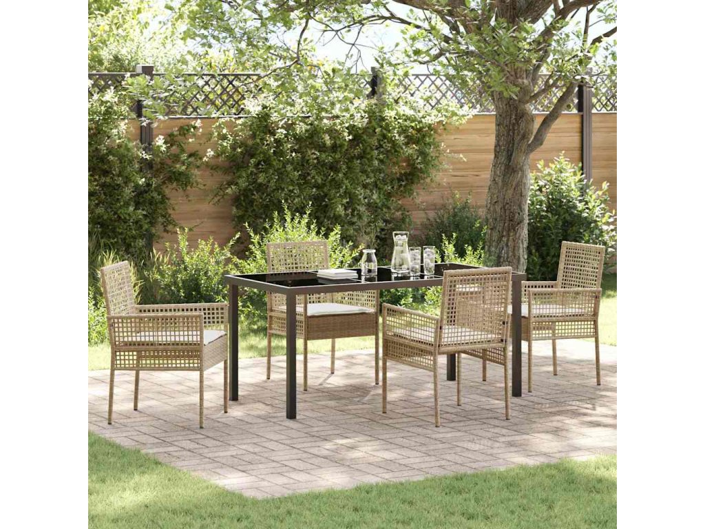 Zahradní jídelní souprava s polštářem 5 pcs Béžová Poly ratan 3379894
