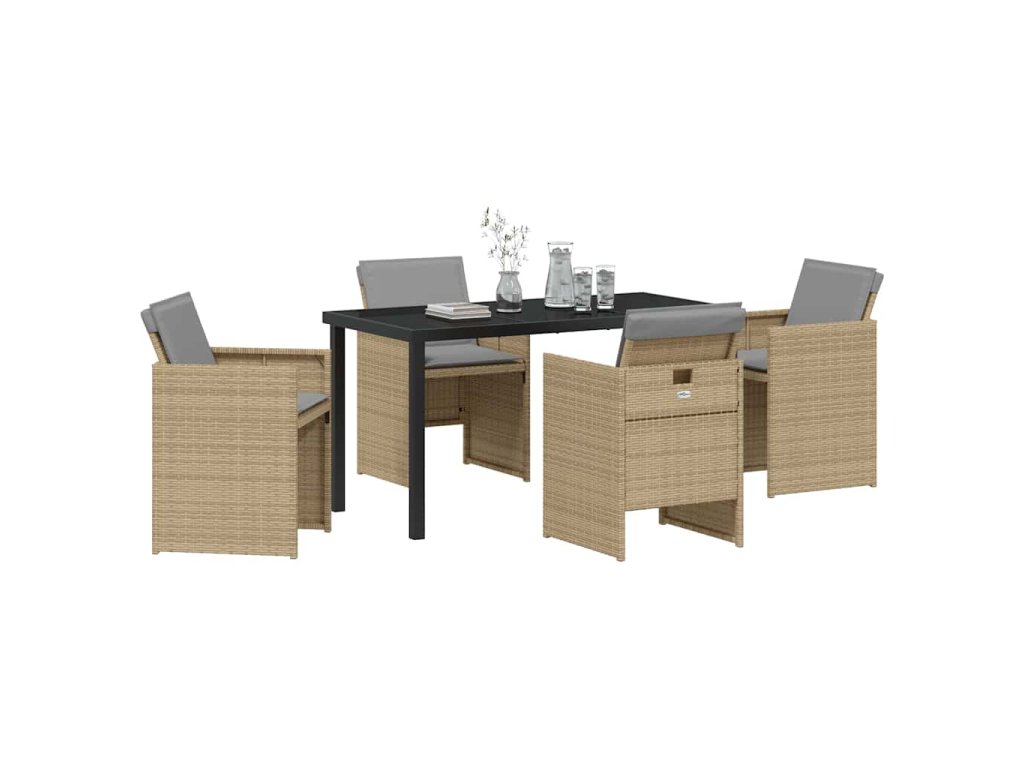 Zahradní jídelní souprava s polštářem 5 pcs Béžová Poly ratan 3379965