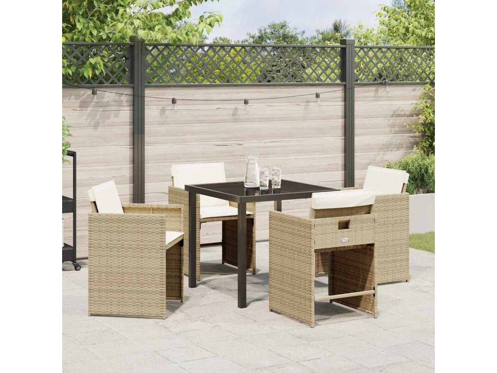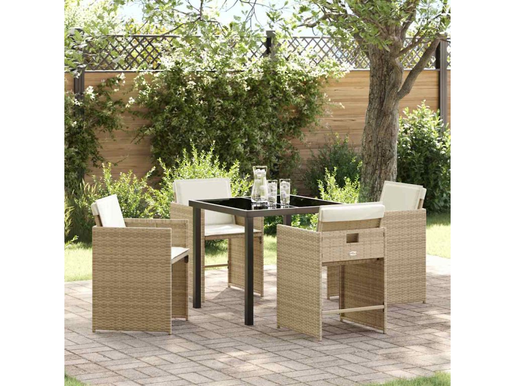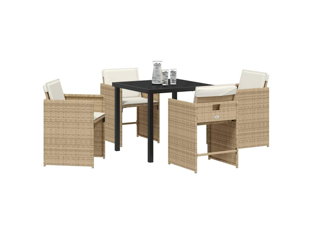 Zahradní jídelní souprava s polštářem 5 pcs Béžová Poly ratan 3379988
