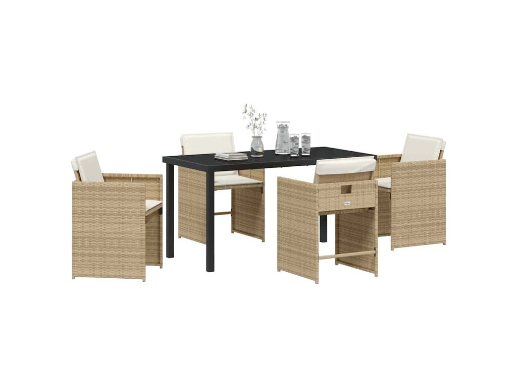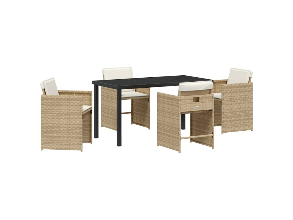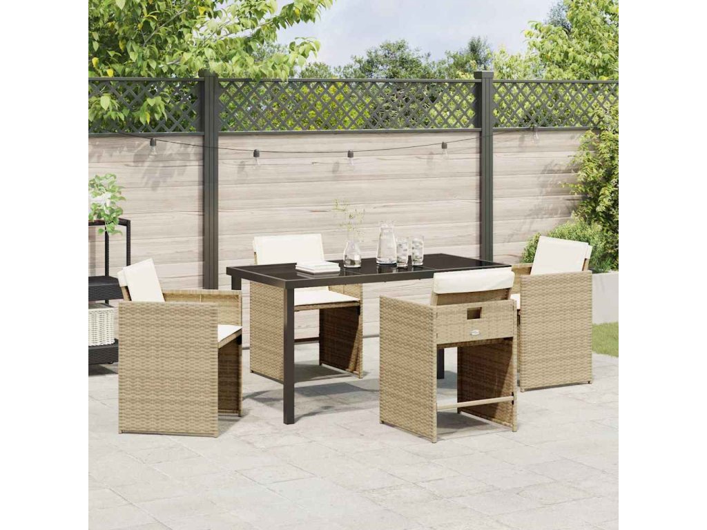 Zahradní jídelní souprava s polštářem 5 pcs Béžová Poly ratan 3379989