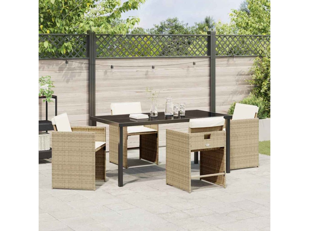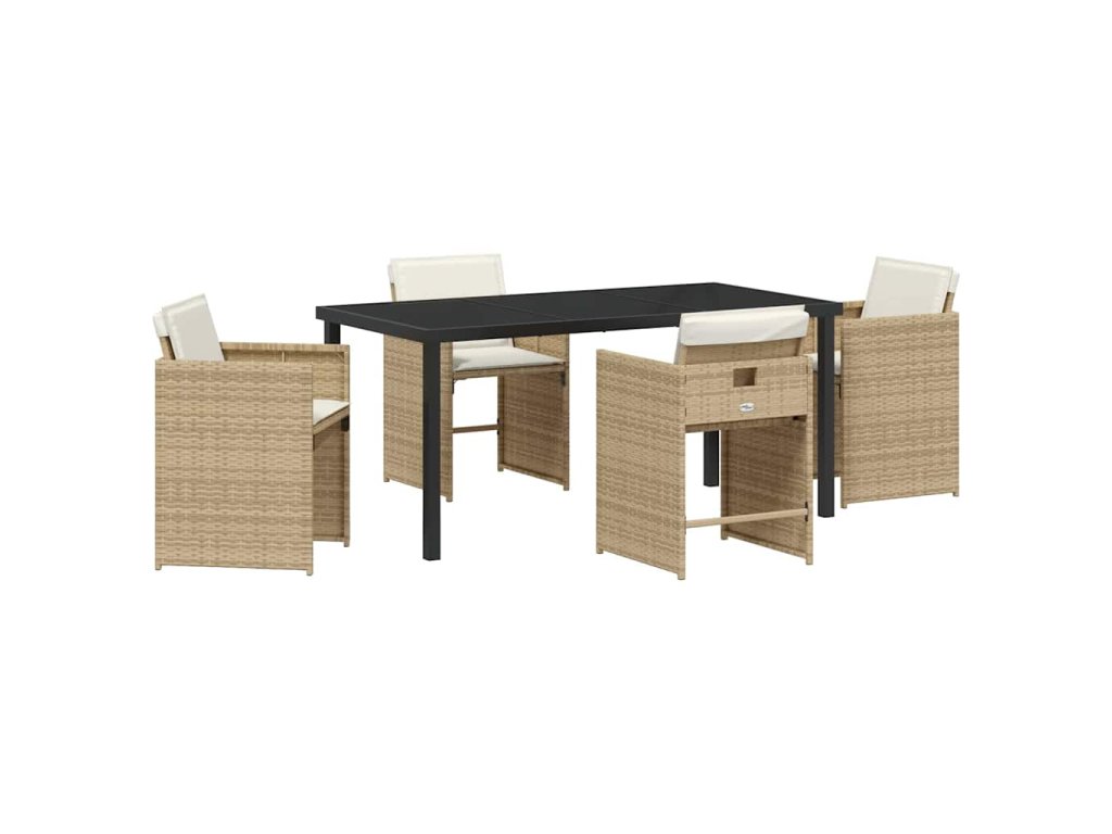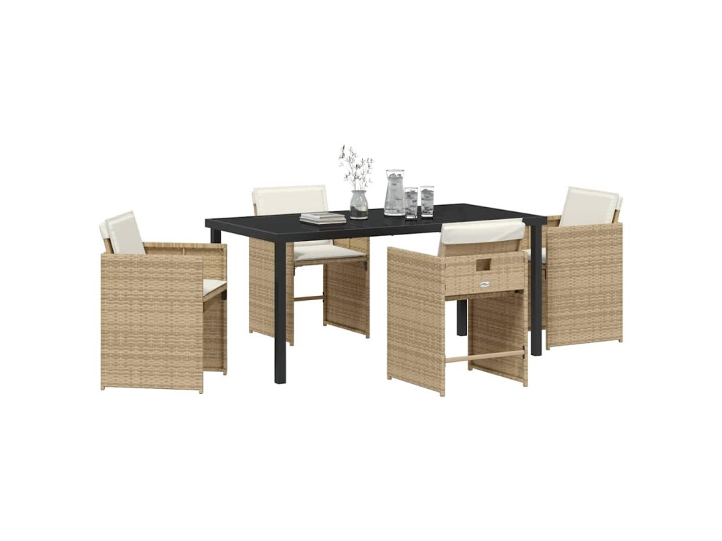Zahradní jídelní souprava s polštářem 5 pcs Béžová Poly ratan 3379990