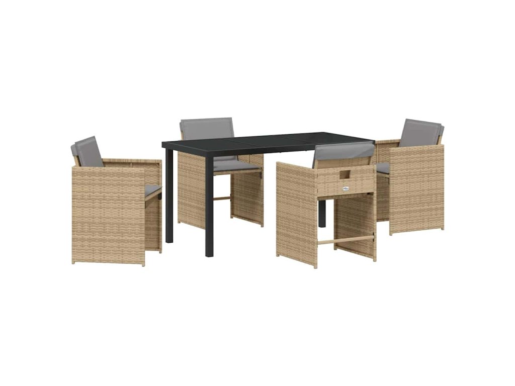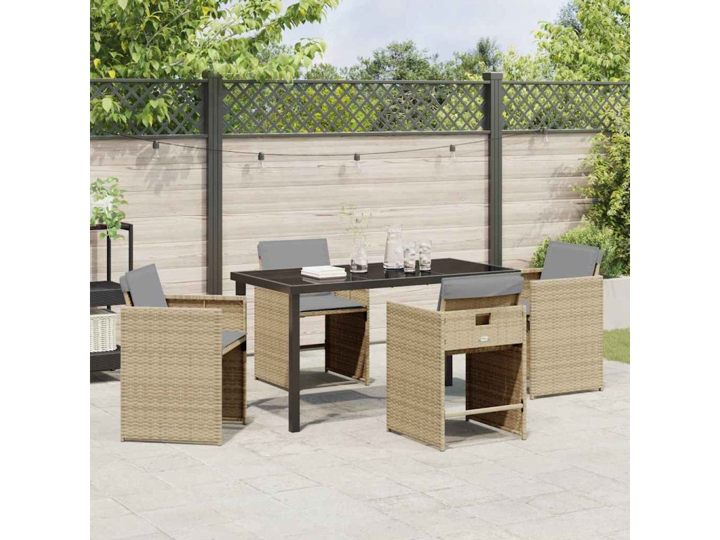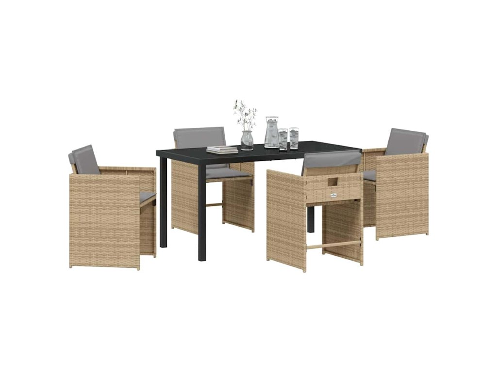 Zahradní jídelní souprava s polštářem 5 pcs Béžová Poly ratan 3379997