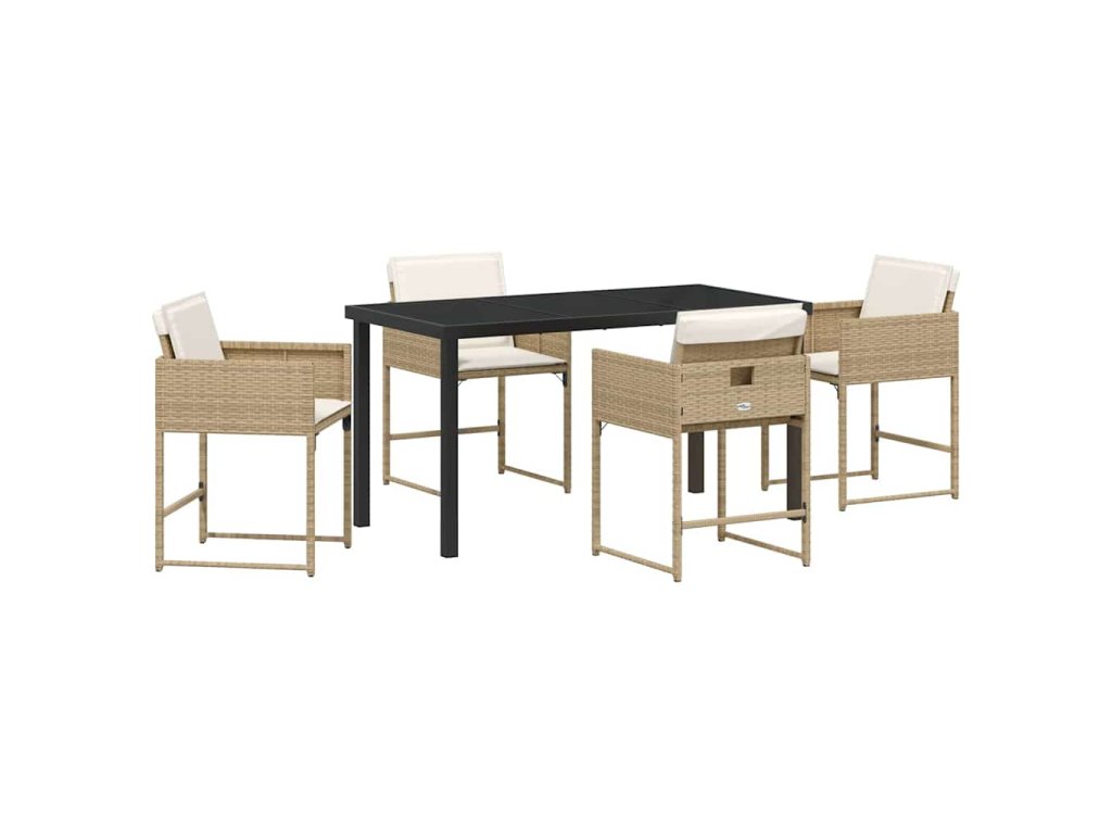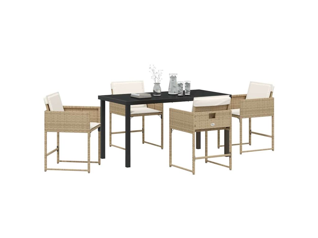 Zahradní jídelní souprava s polštářem 5 pcs Béžová Poly ratan 3380021