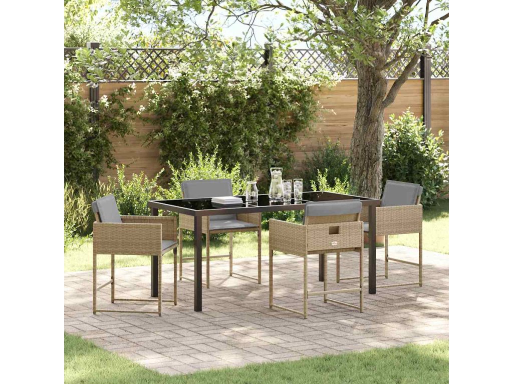 Zahradní jídelní souprava s polštářem 5 pcs Béžová Poly ratan 3380030